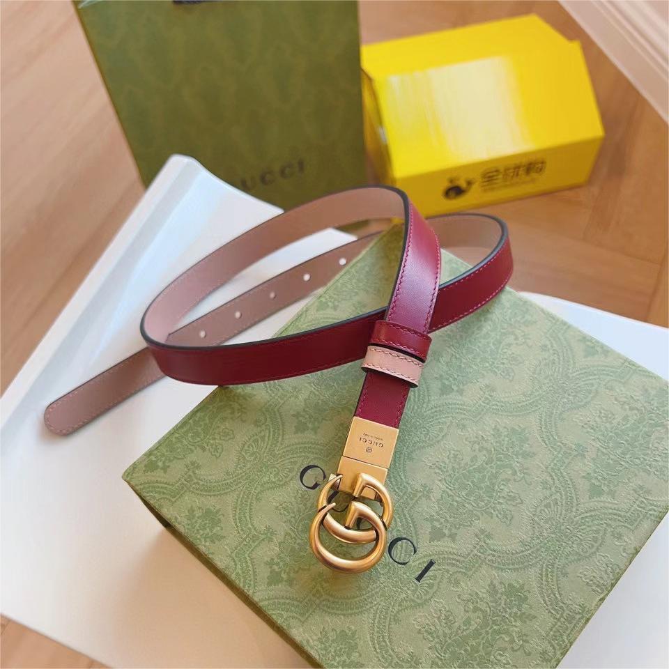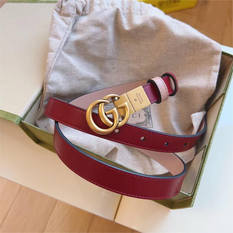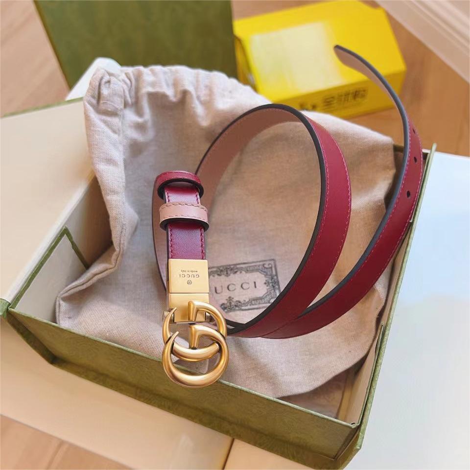 Gucci 古驰 2.0cm 经典红粉平滑扣