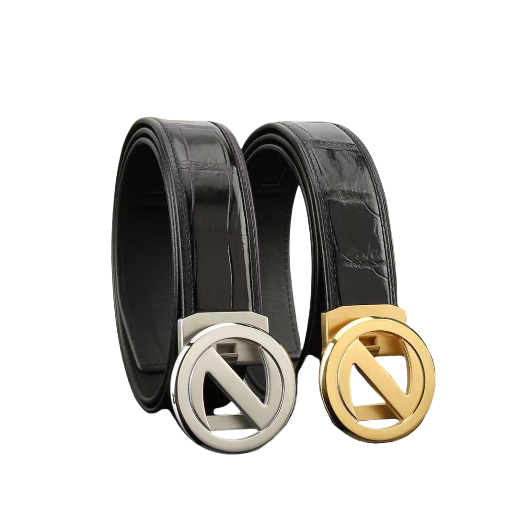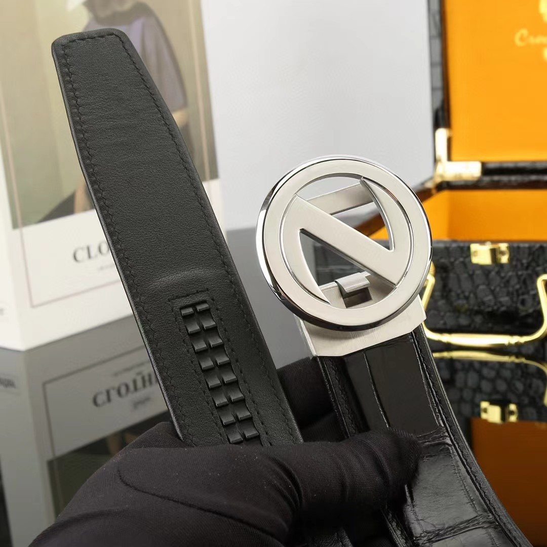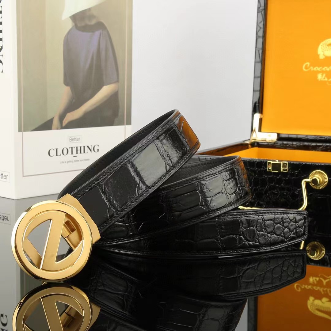 描述:德国进口机车车线 ,采用野生进口真鳄鱼肚皮,鳄鱼骨无拼接皮带纯黑色,搭配精致电镀不锈钢扣头.百搭,上身超好,品质一流!长度可裁剪,高端客户入!