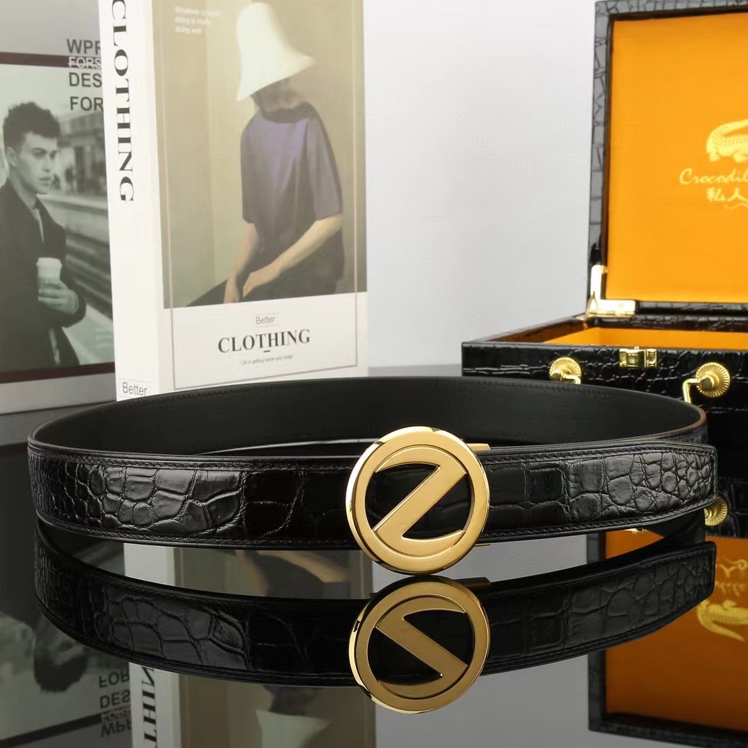 ZEGNA 杰尼亚 3.5cm 鳄鱼皮自动扣