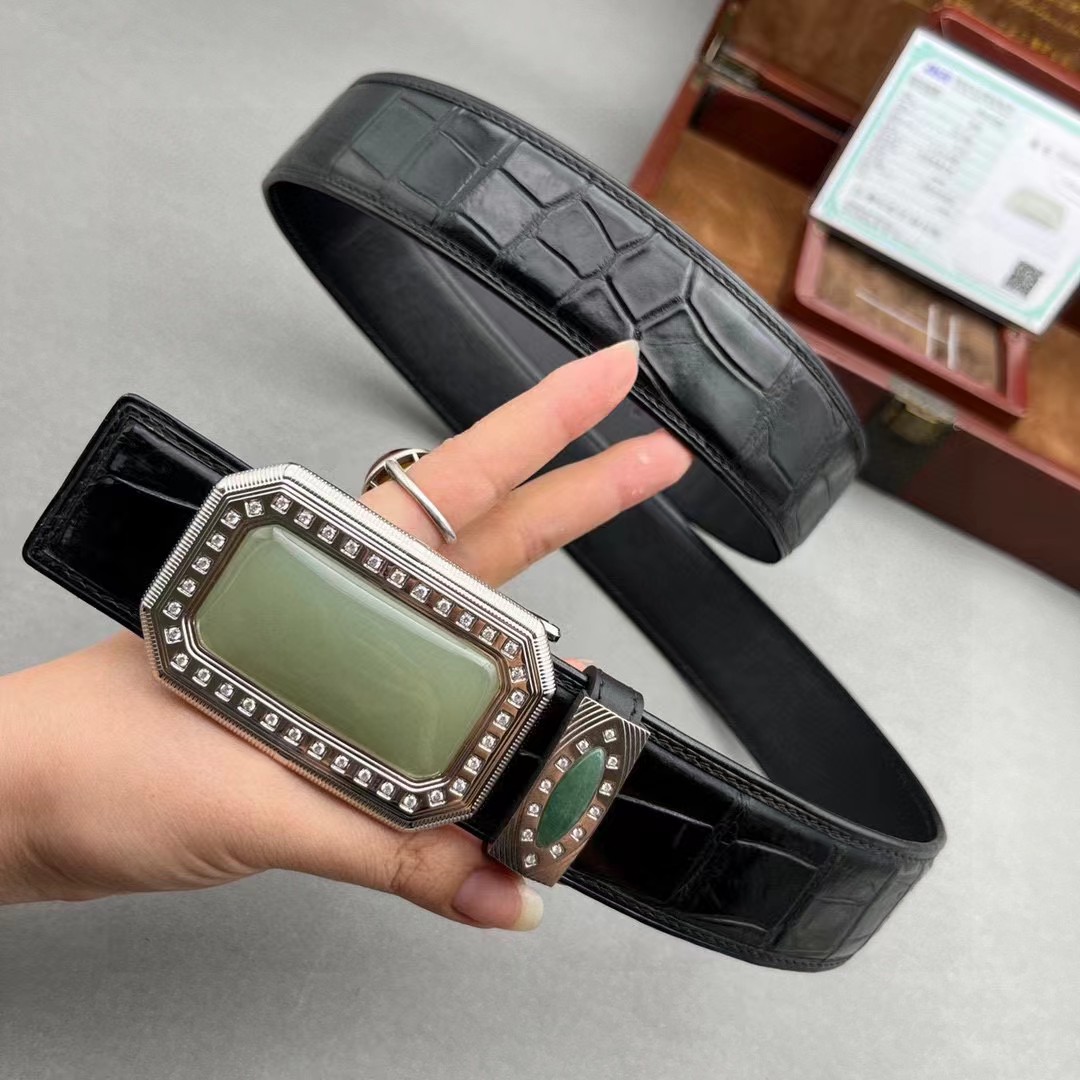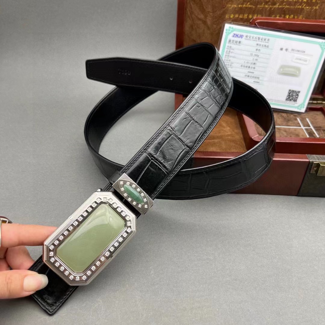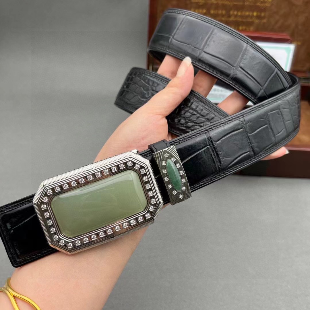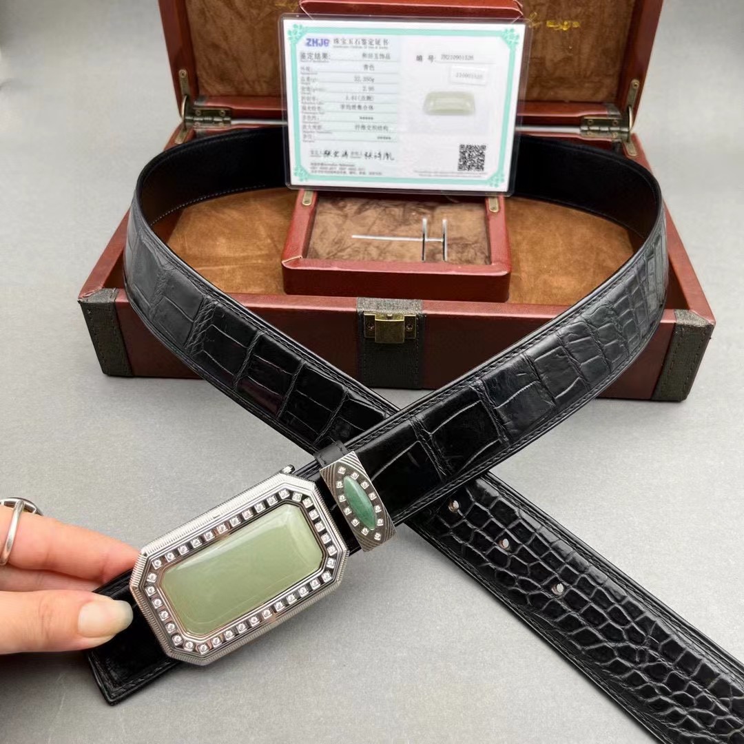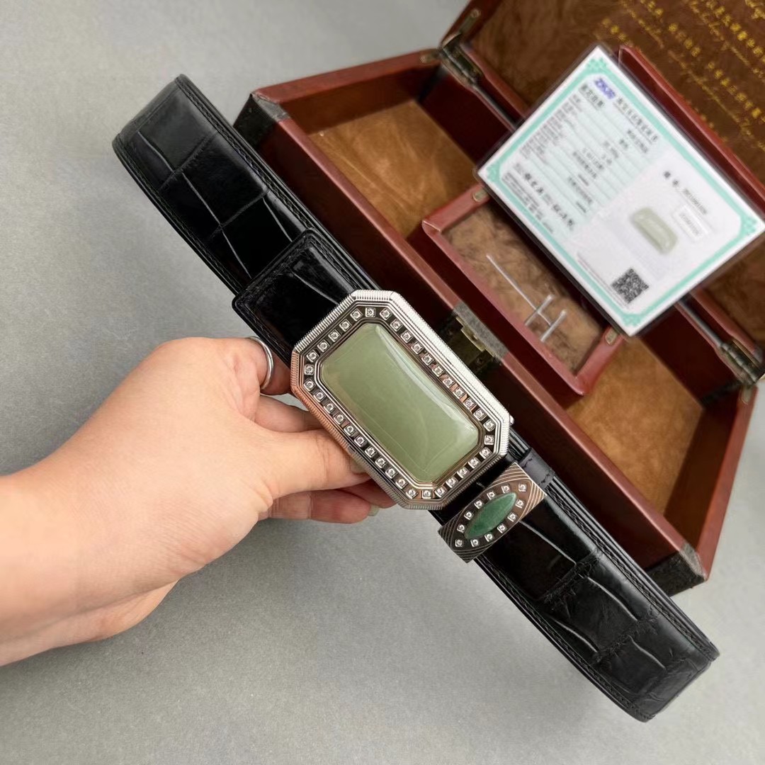 材质:进口美洲鳄鱼皮 搭配 金扣俄罗斯和田玉