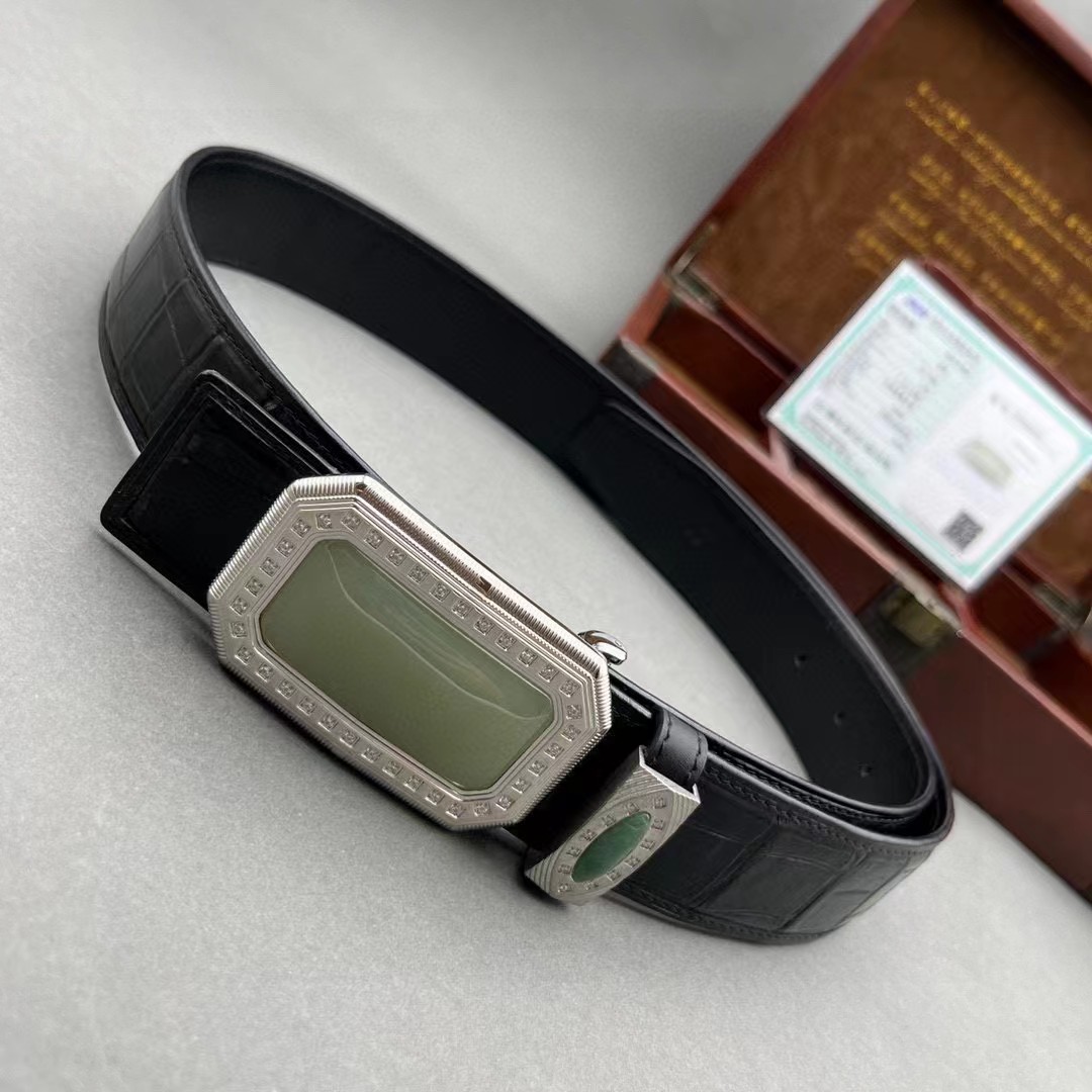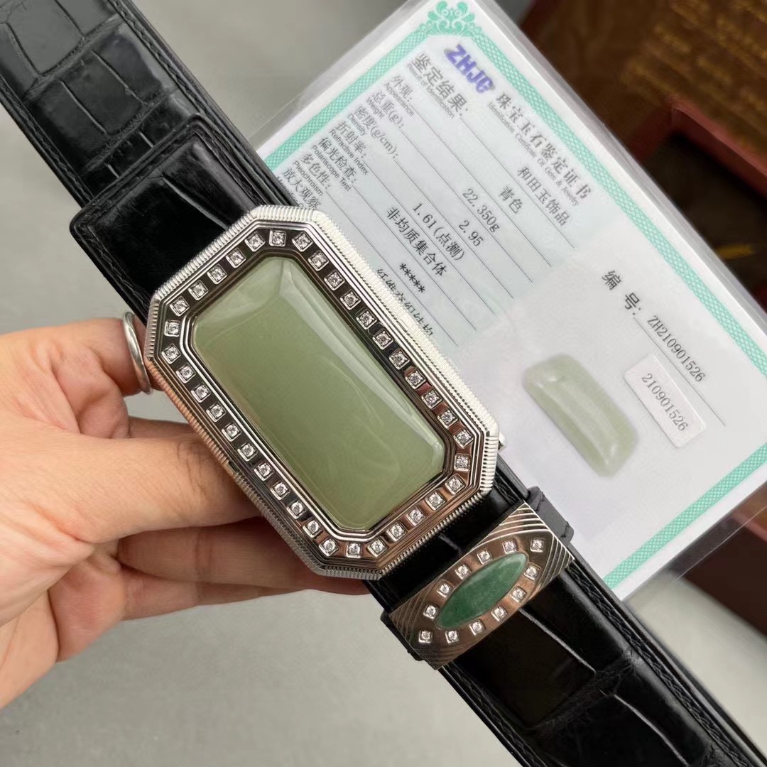描述:和田玉鳄鱼系列,带身采用美洲进口鳄鱼皮取腹皮没有接口,无伤残,不一样的视觉冲击,配以俄罗斯进口和田玉,永不掉色,高端男士独一无二的奢华之选。