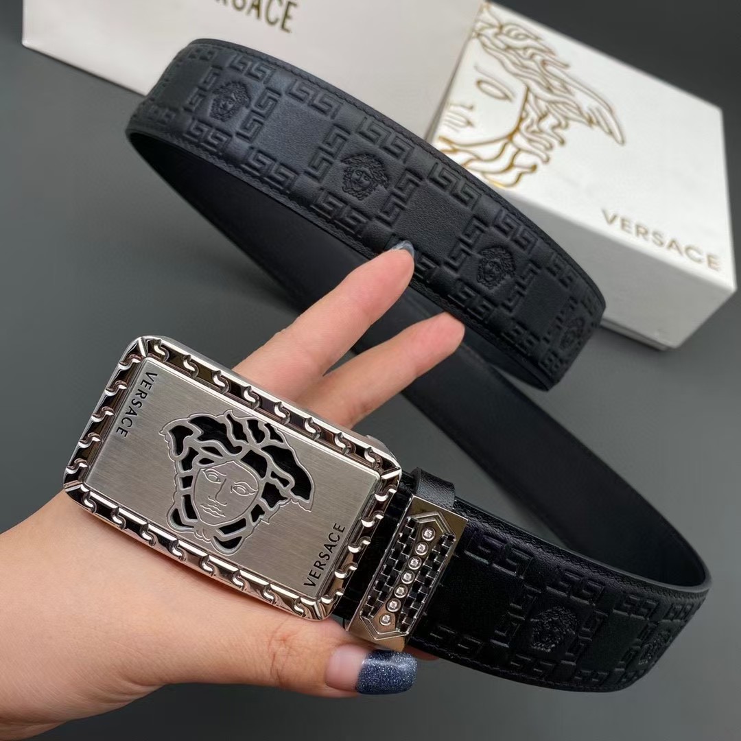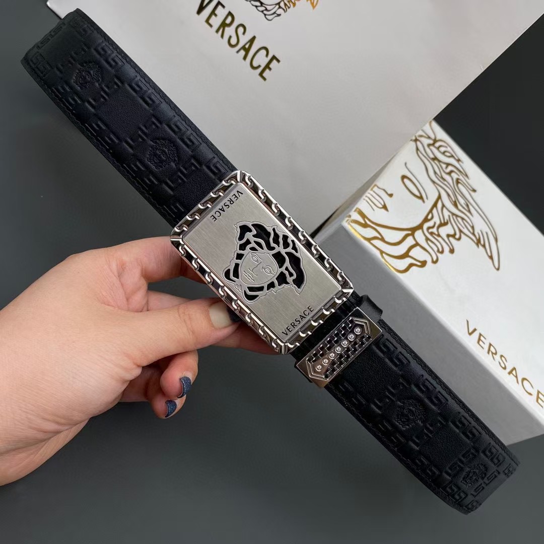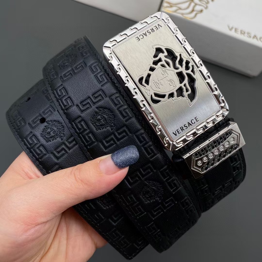 VERSACE 范思哲 3.8cm 头层牛皮压花 平滑扣