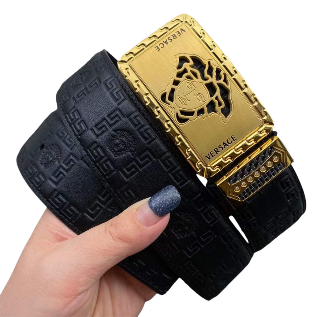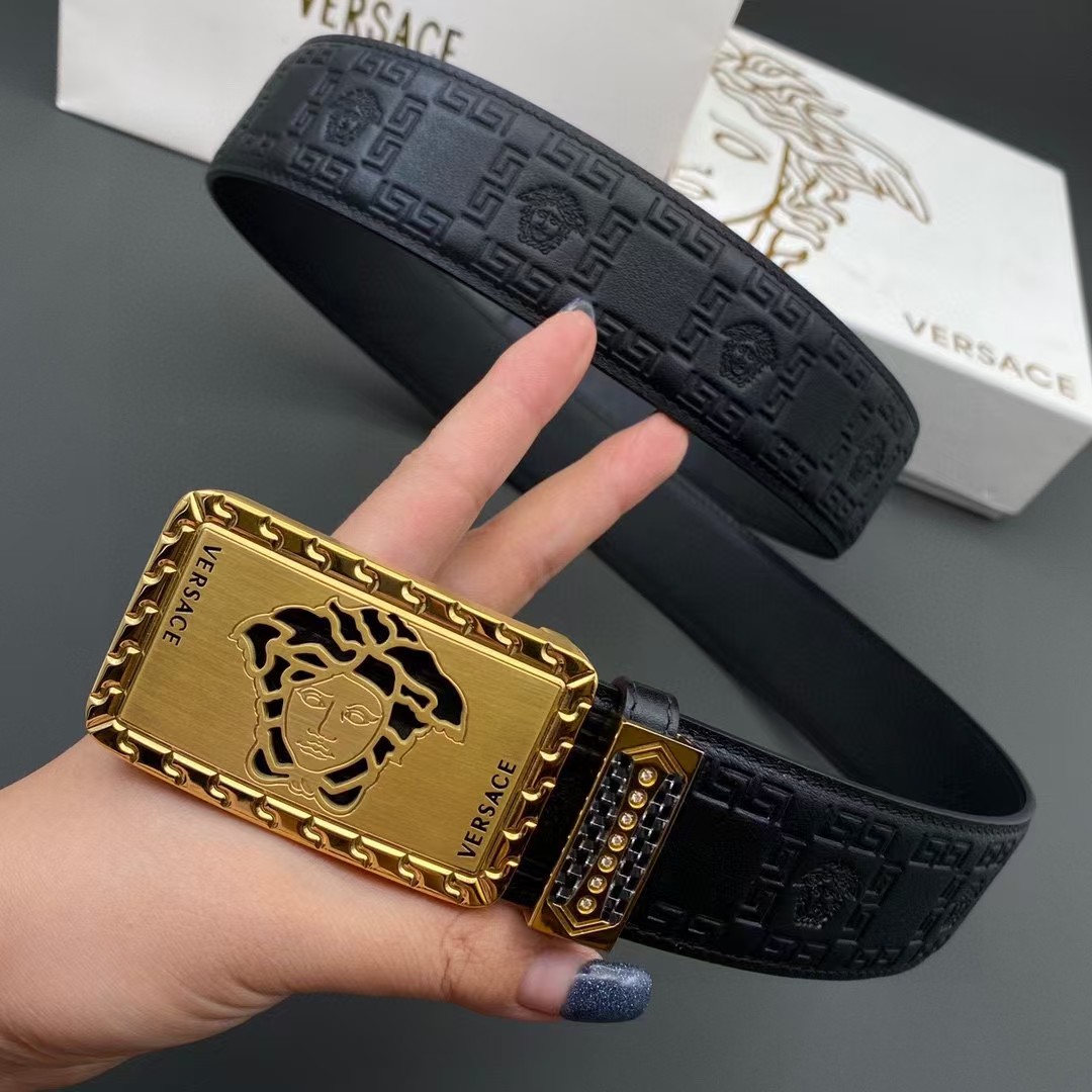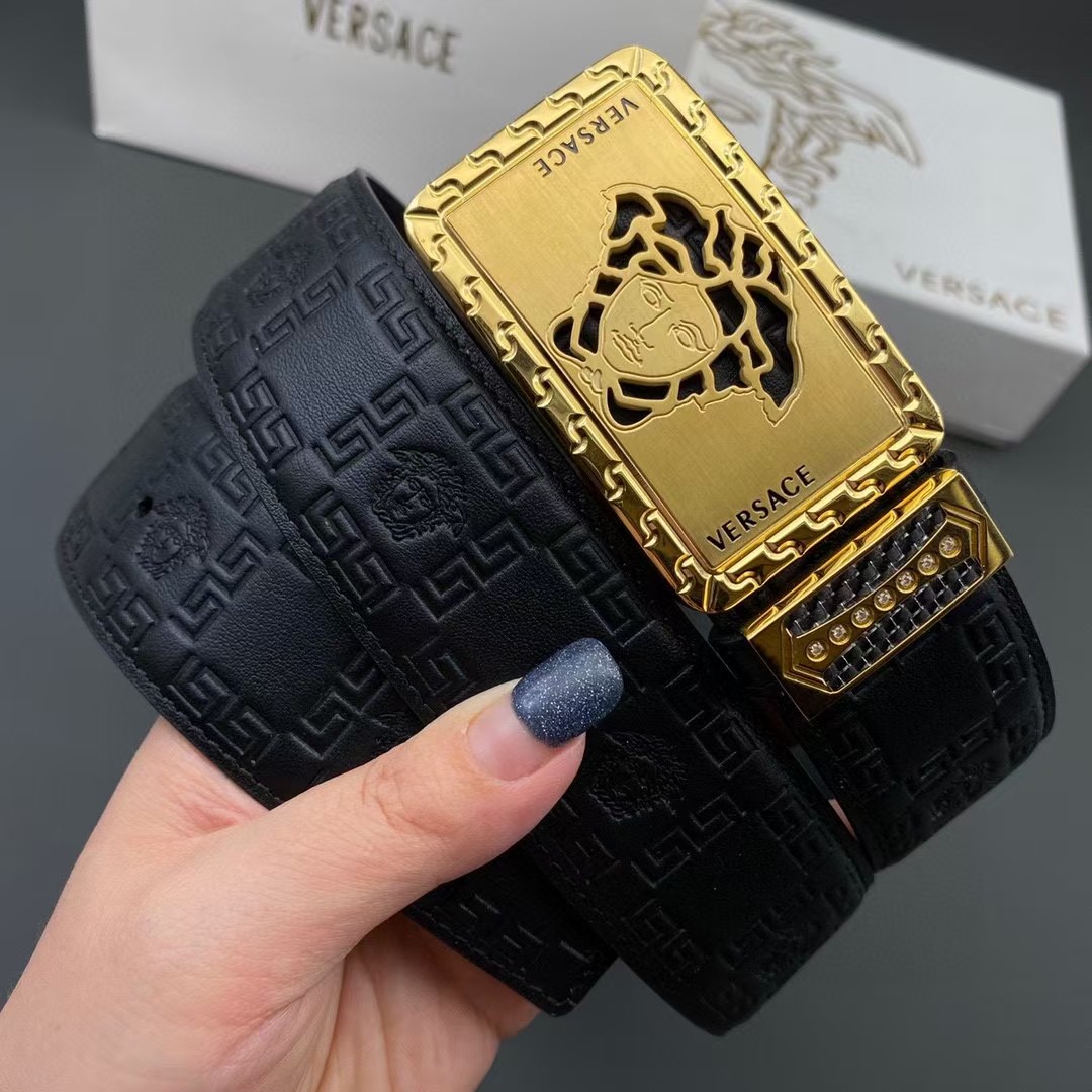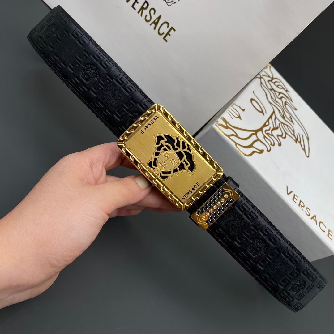 VERSACE 范思哲 3.8cm 头层牛皮压花 平滑扣