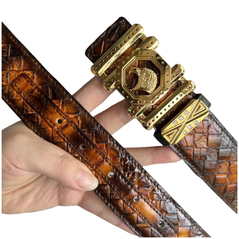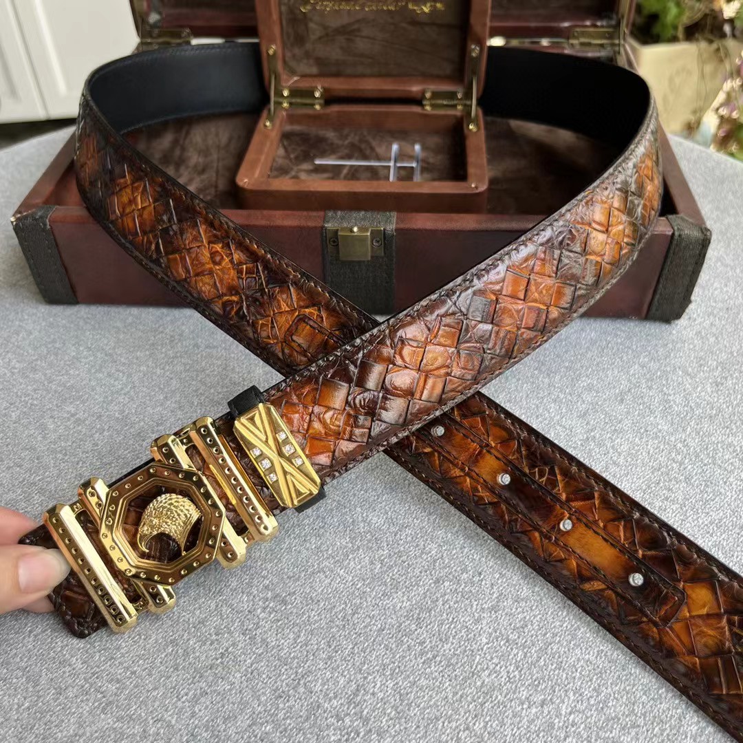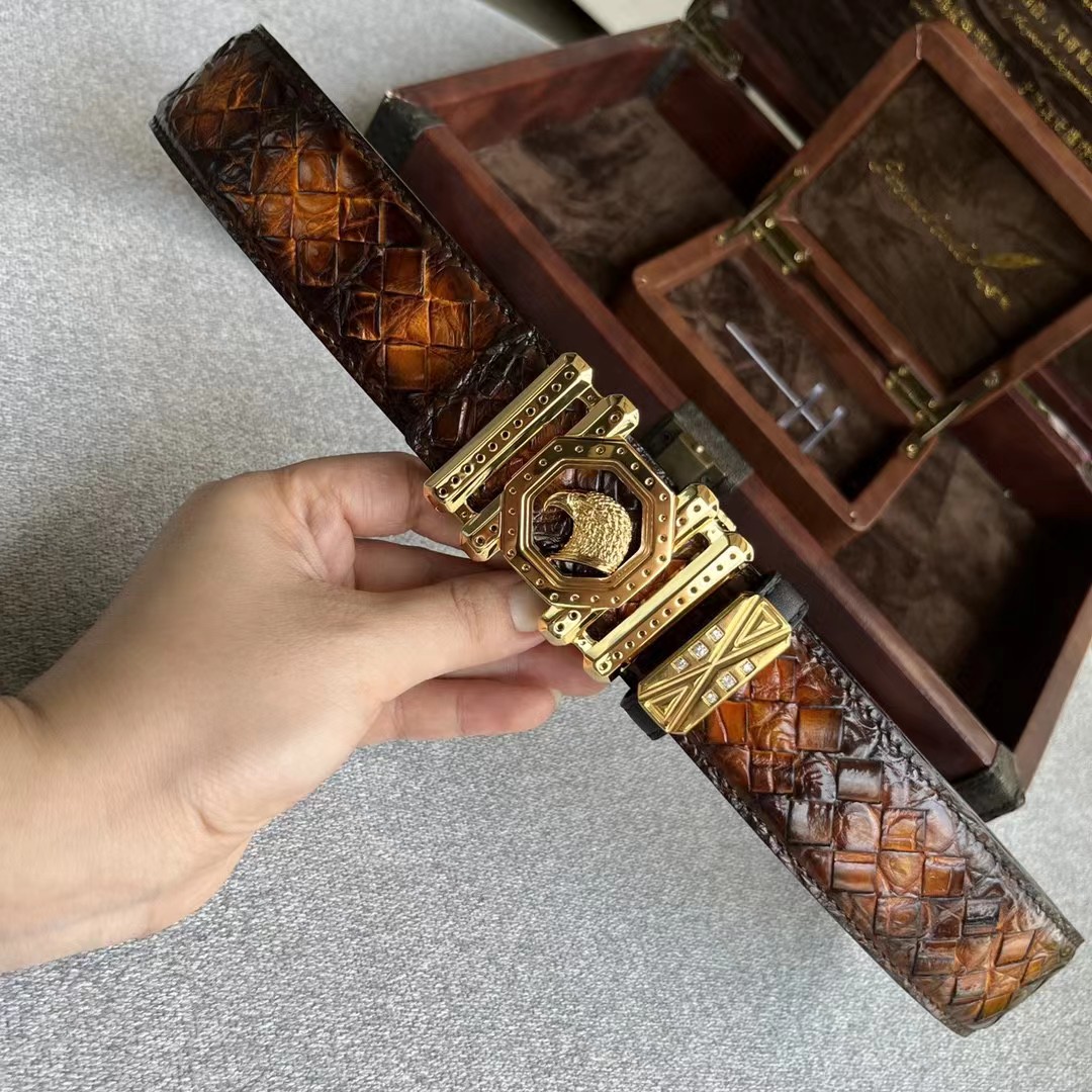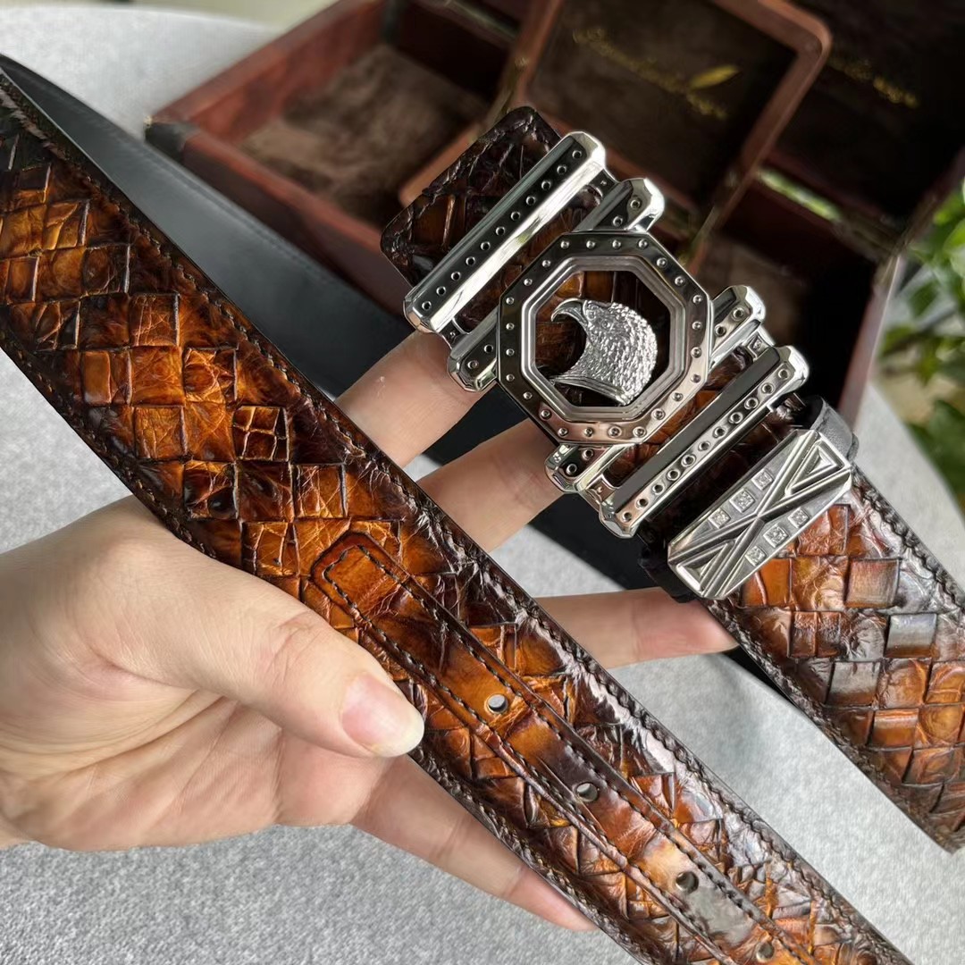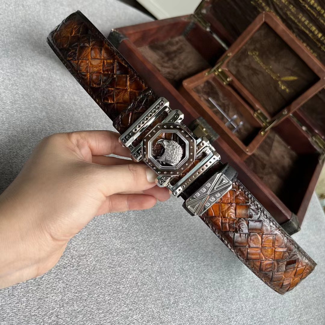 【介绍】史蒂芬鳄鱼系列,全球官网有售!带身采用美洲进口鳄鱼皮手工擦色取腹皮没有接口手工编织《一位工人一天只能编2条》不一样的视觉冲击,精湛做工非市场所能媲美,海外代购最热系列 搭配定制原单钢扣3.8宽(永不掉色)秉承独特的设计风格引领时尚 高端品质 支持专柜验货!