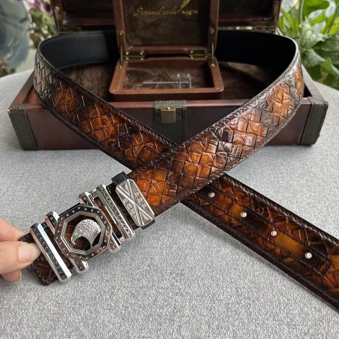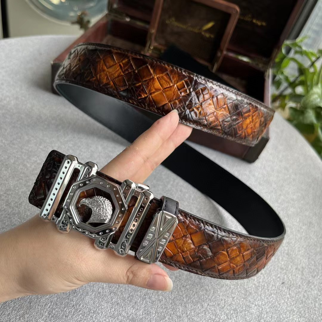 Stefano Ricci 史蒂芬劳.尼治 3.8CM 纯手工擦色美洲鳄腹皮 平滑扣