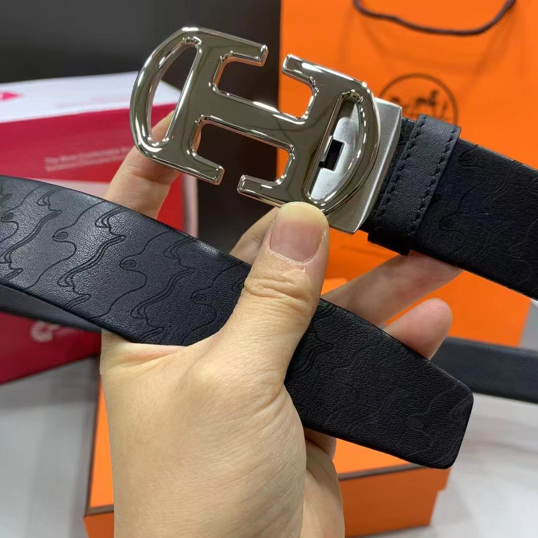 HERMES 爱马仕 3.5cm 牛皮革压纹 自动扣
