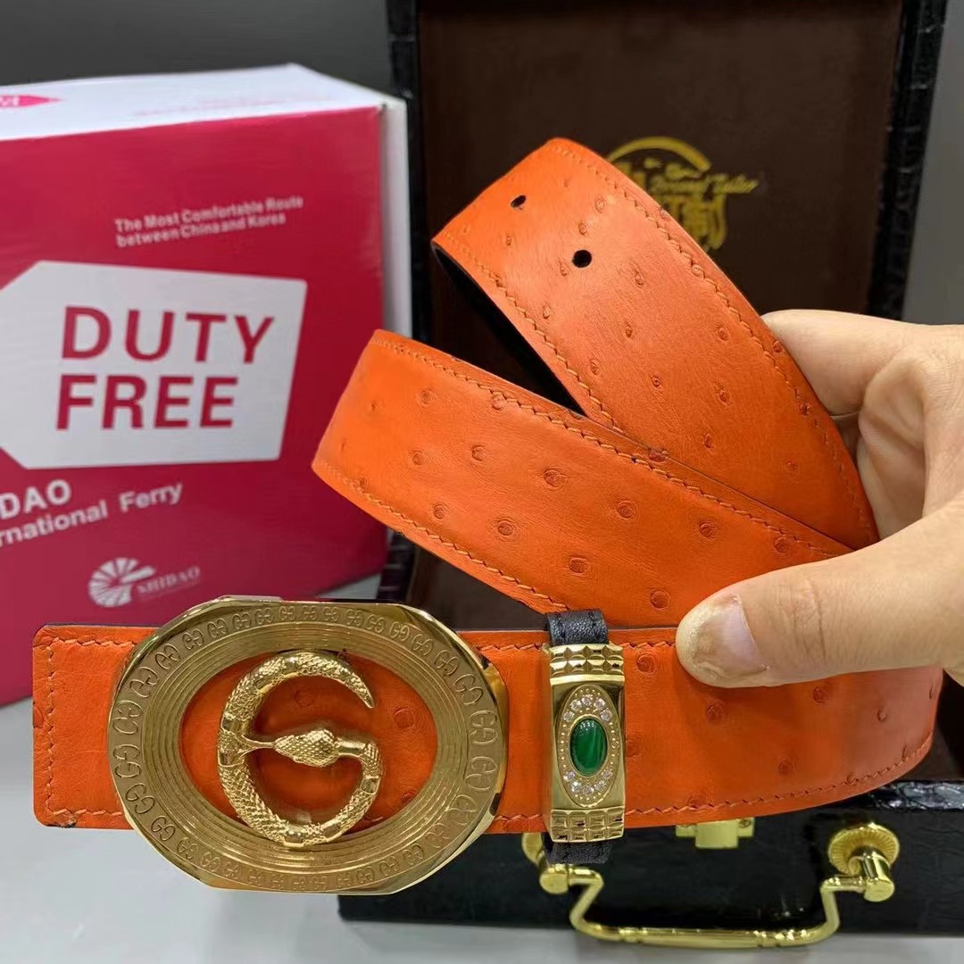 Gucci 古驰 3.8cm 澳洲野生炫彩橙鸵鸟皮 平滑扣