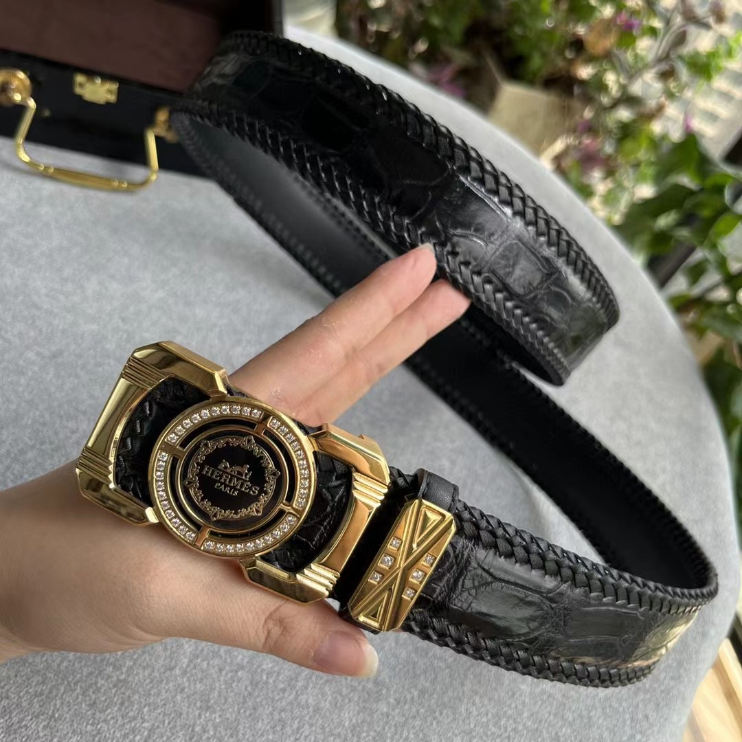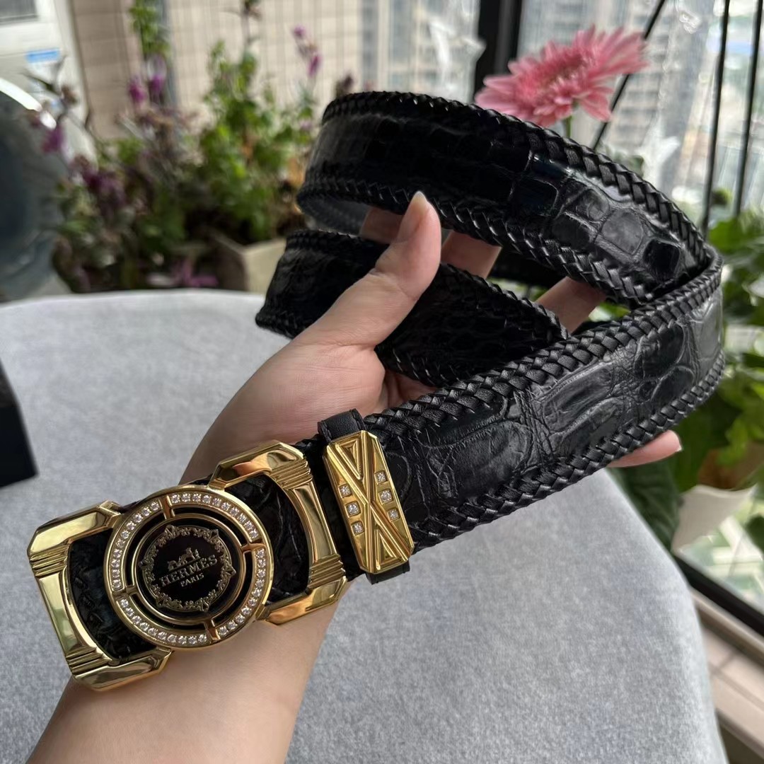 爱马仕原单鳄鱼系列,全球官网有售!带身采用美洲进口鳄鱼皮取腹皮没有接口手工编织《一位工人一天只能编2条》不一样的视觉冲击,精湛做工非市场所能媲美,海外代购最热系列 搭配定制原单钢扣3.8宽(永不掉色)秉承独特的设计风格引领时尚 高端品质 支持专柜验货!腰带皮带 亲们为保证质量 下单请认清细节及配件。
