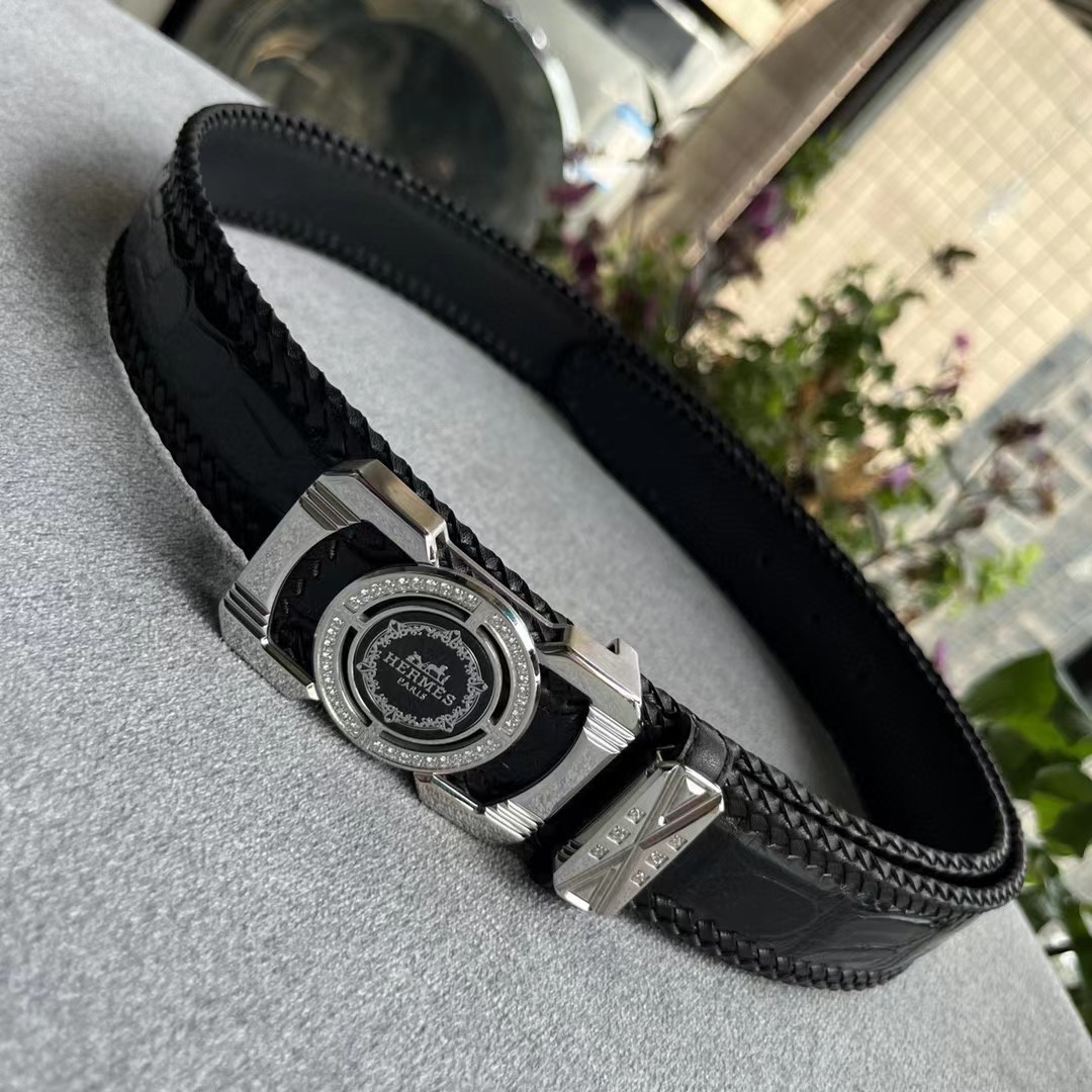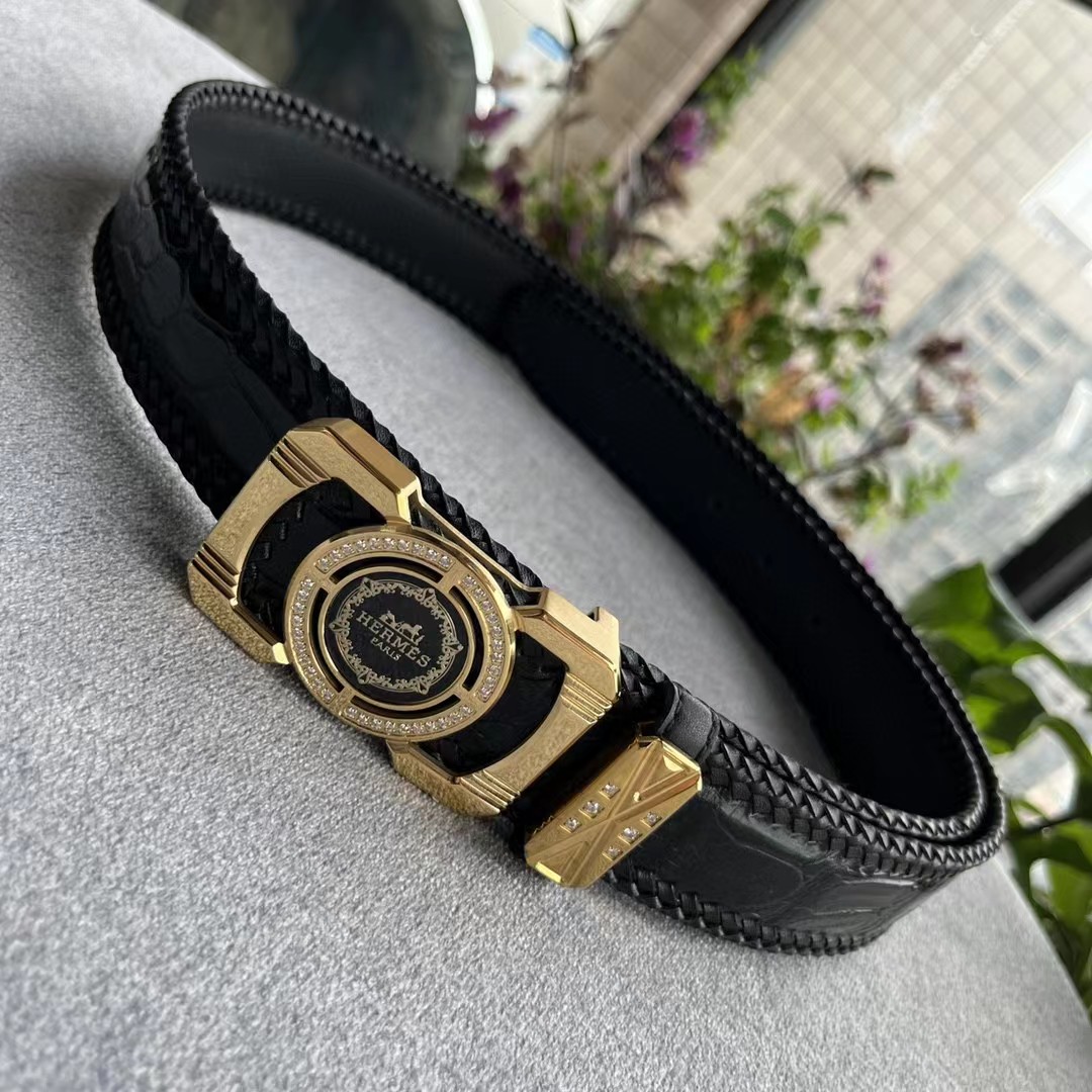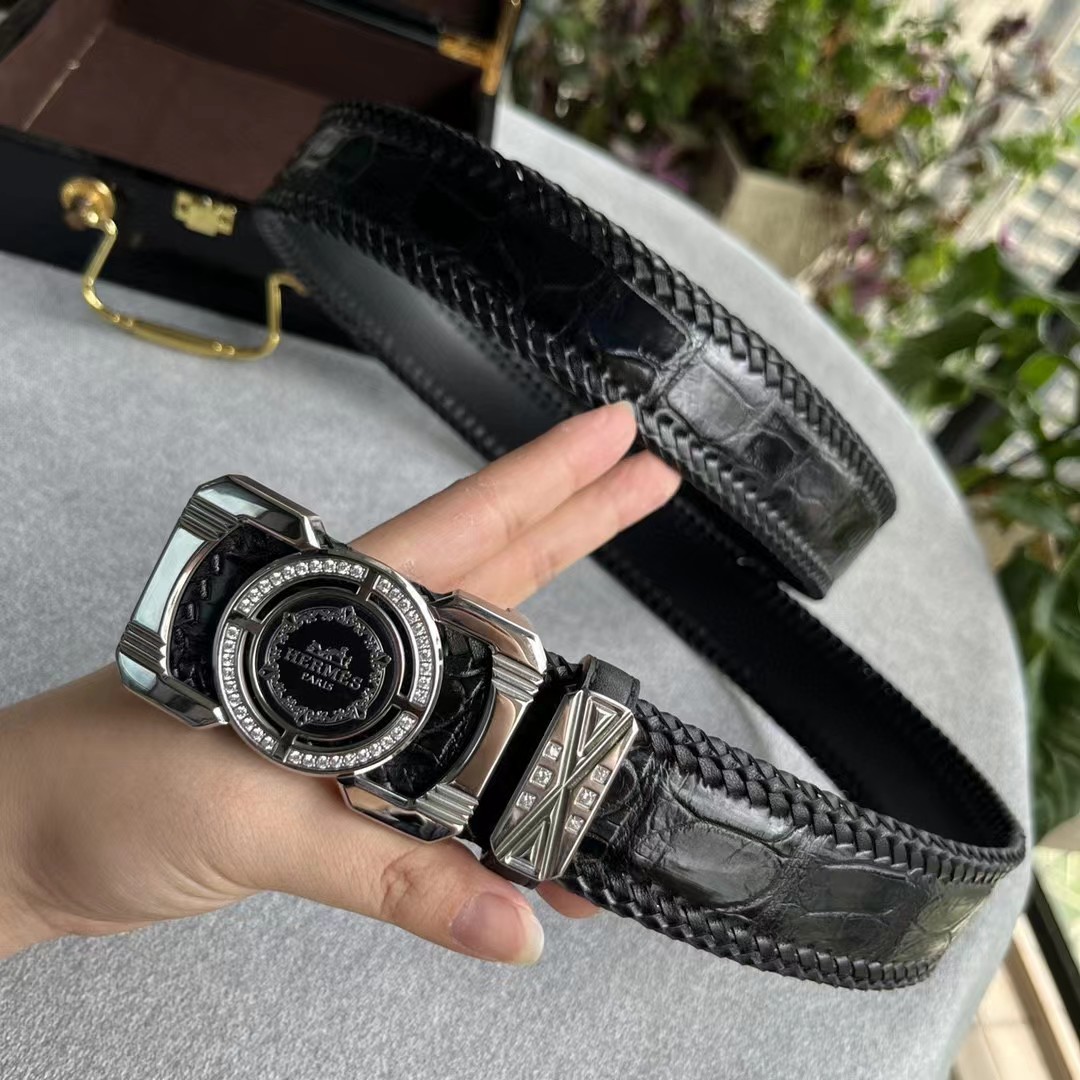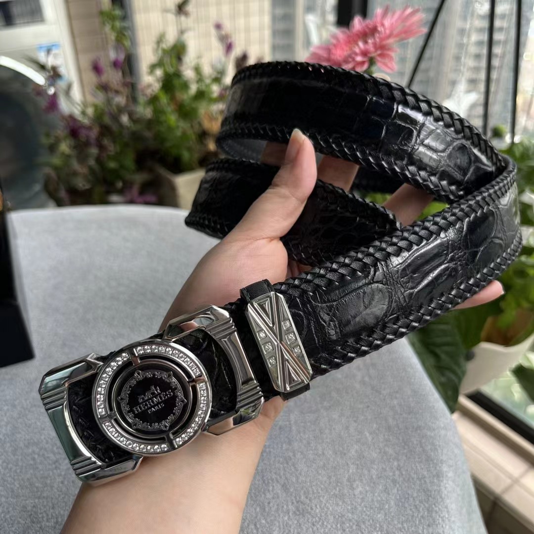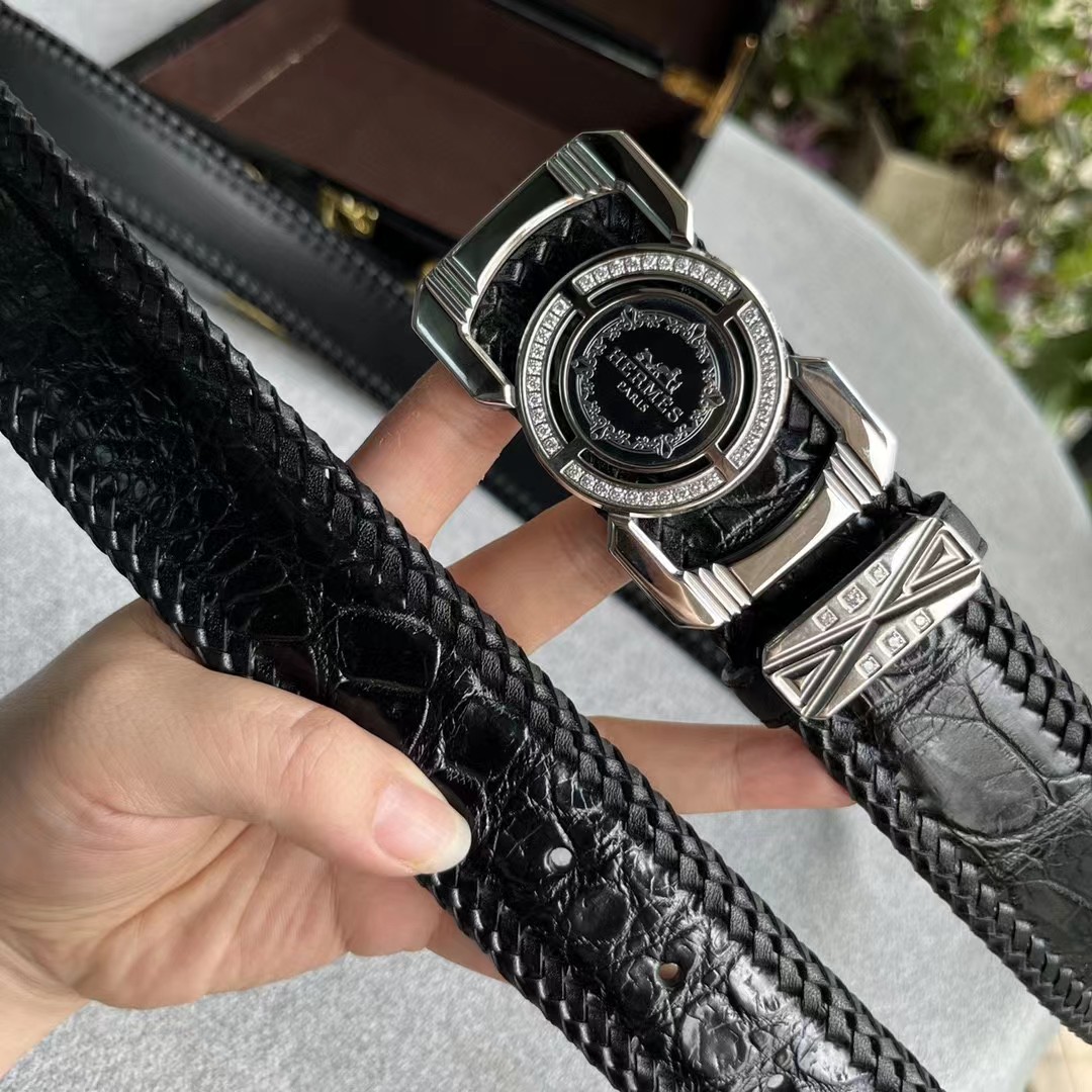 HERMES 爱马仕 3.8cm 纯手工编制美洲鳄鱼腹皮系列 平滑扣