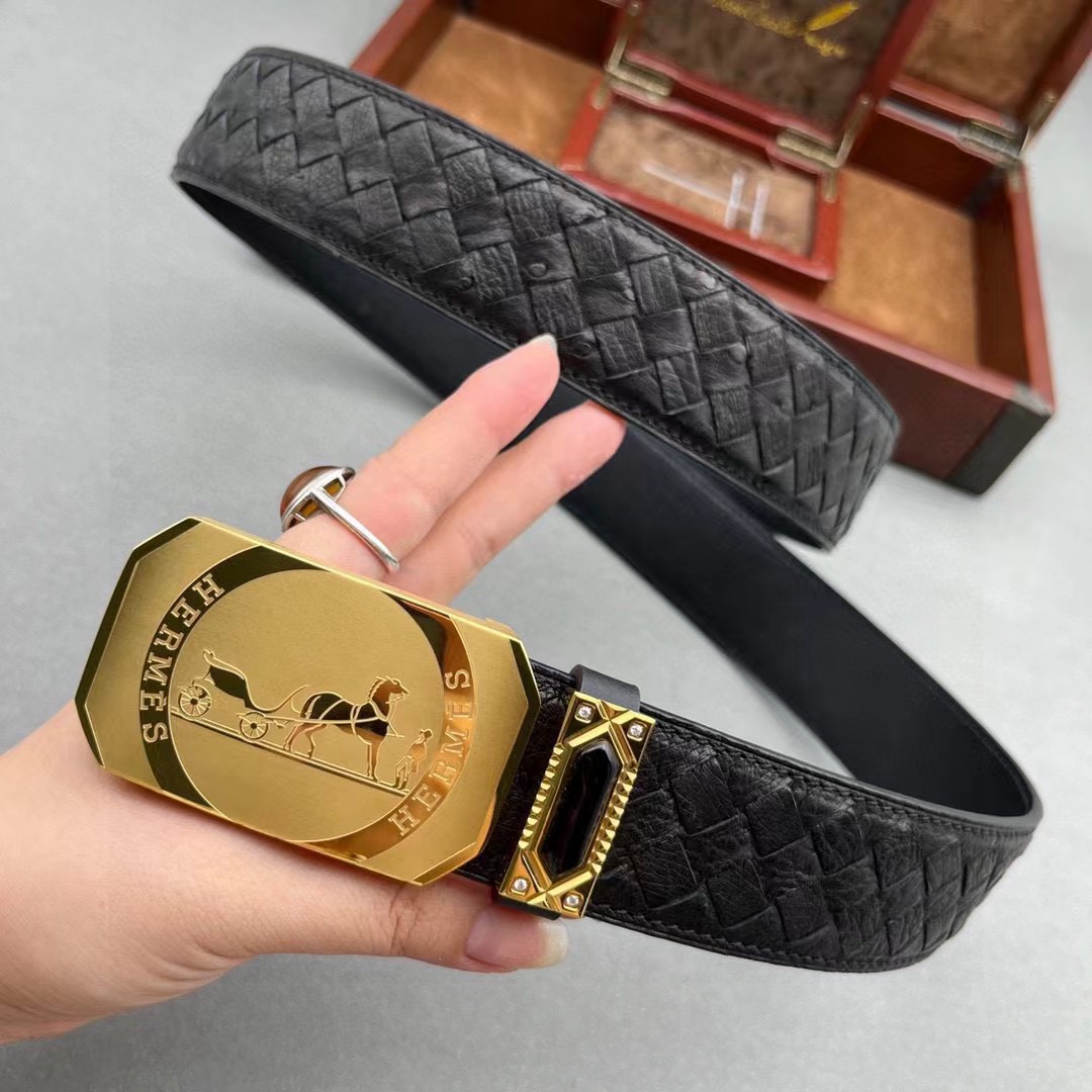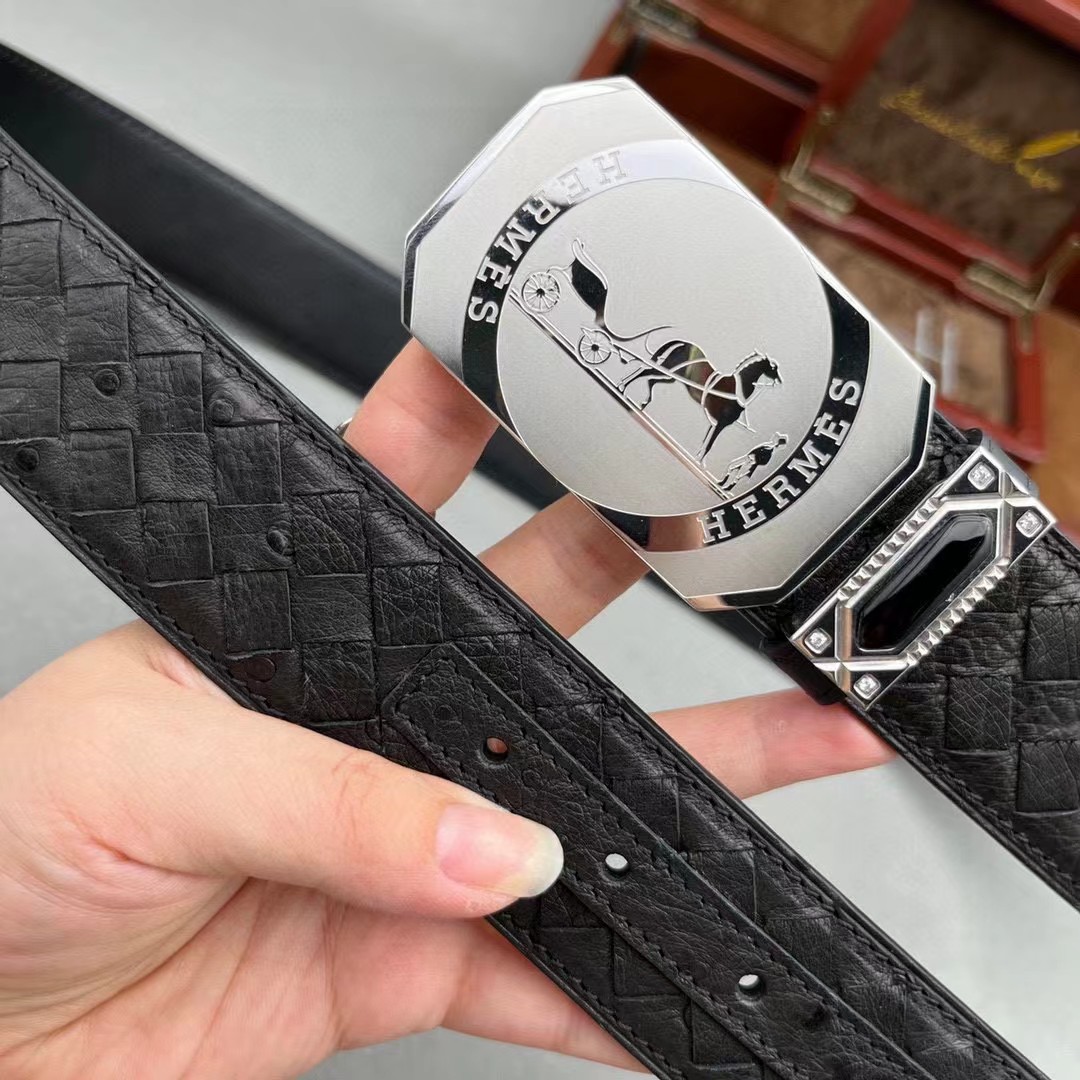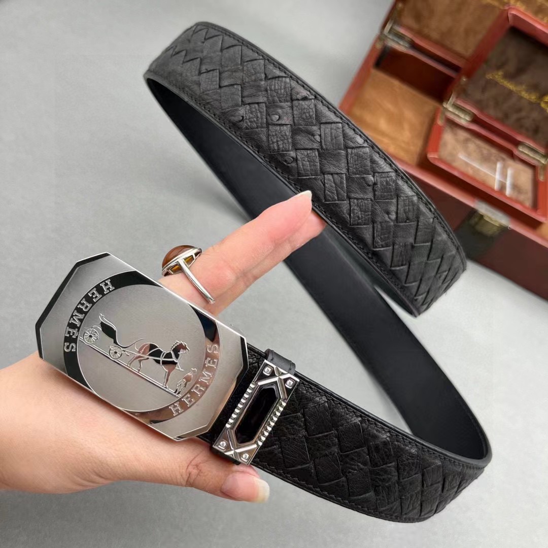 爱马仕原单鸵鸟系列,全球官网有售!带身采用美洲进口鸵鸟皮取腹皮没有接口手工穿叉编织《一位工人一天只能编2条》不一样的视觉冲击,精湛做工非市场所能媲美,海外代购最热系列 搭配定制原单钢扣3.8宽(永不掉色)秉承独特的设计风格引领时尚 高端品质 支持专柜验货!腰带皮带 亲们为保证质量 下单请认清细节及配件 我们只做高端品质。