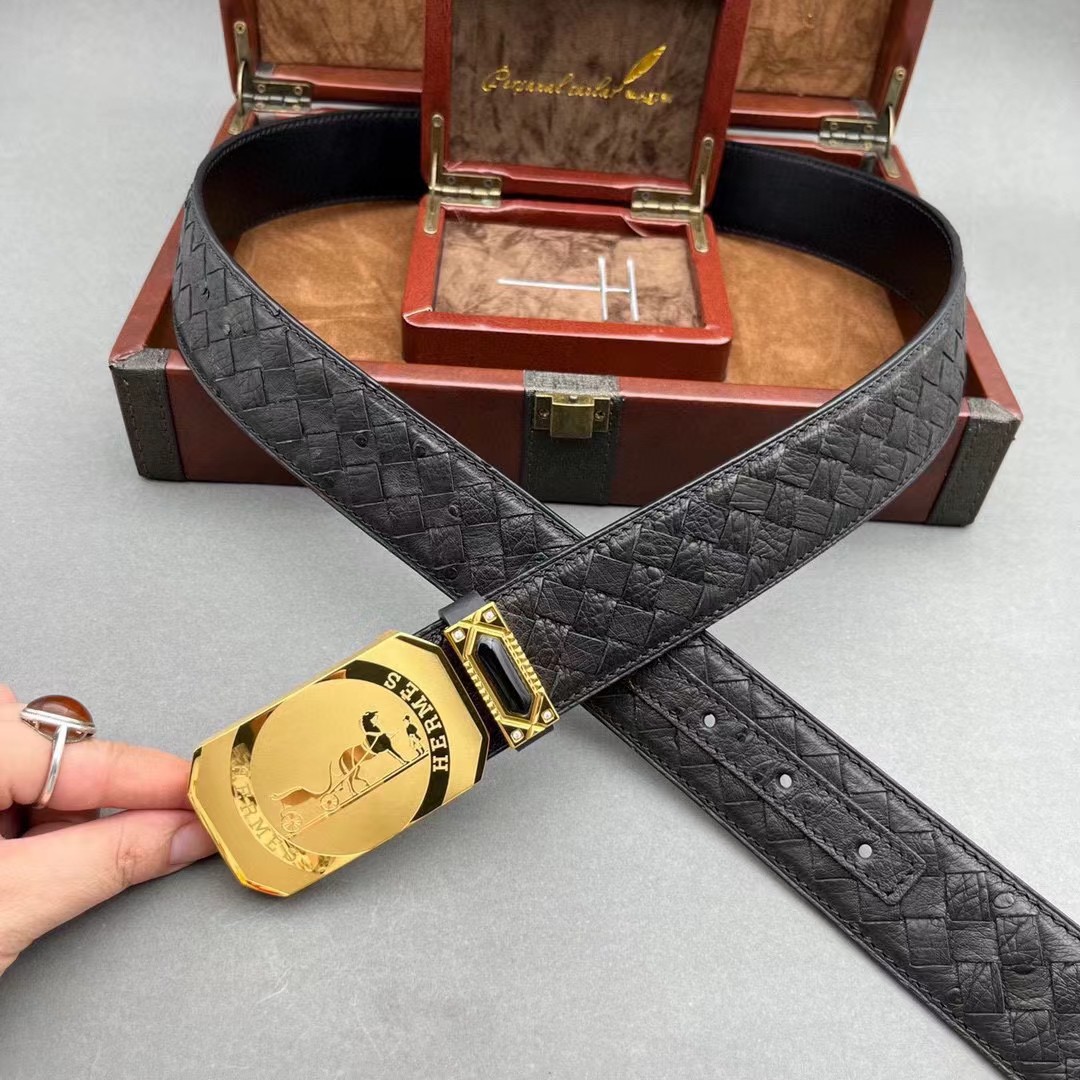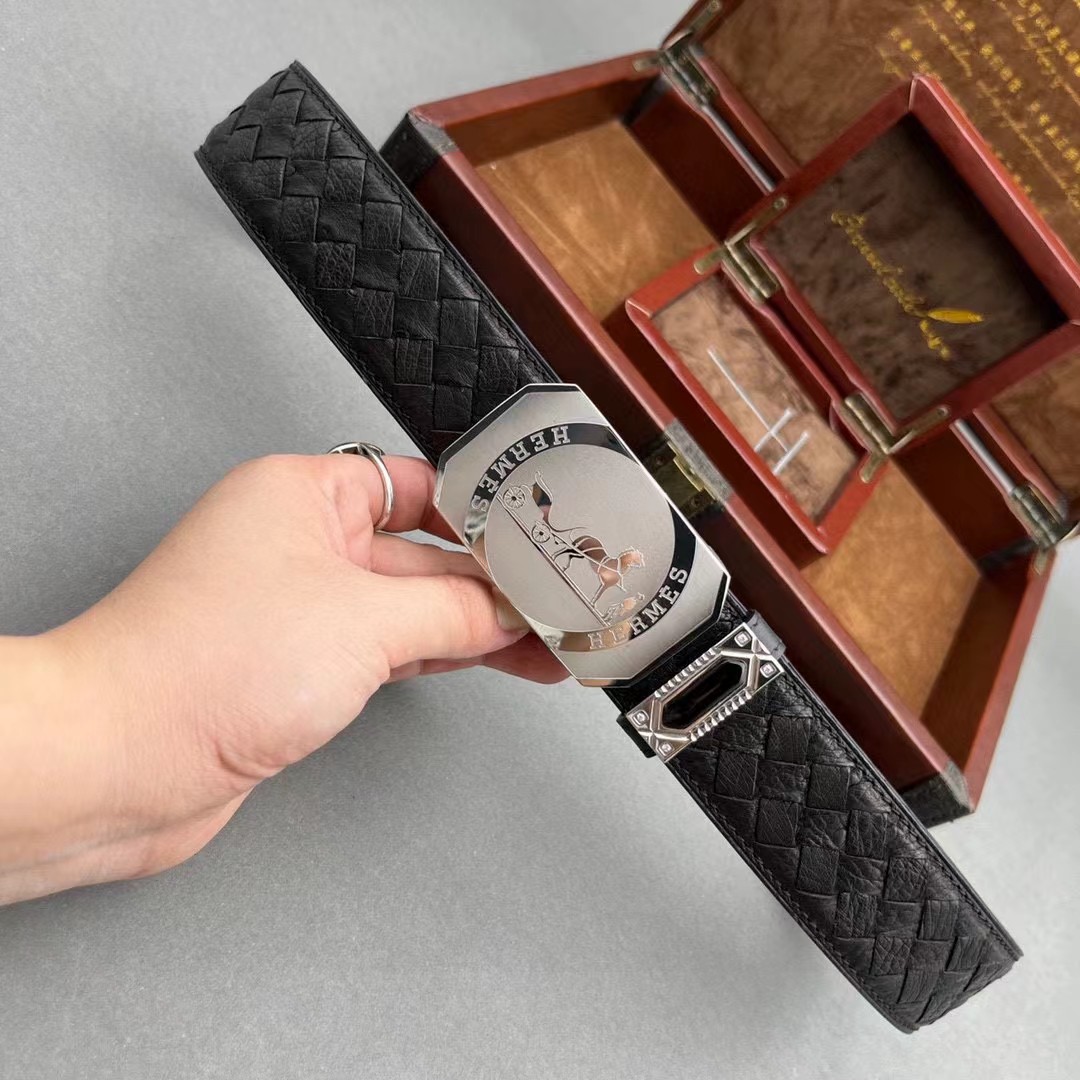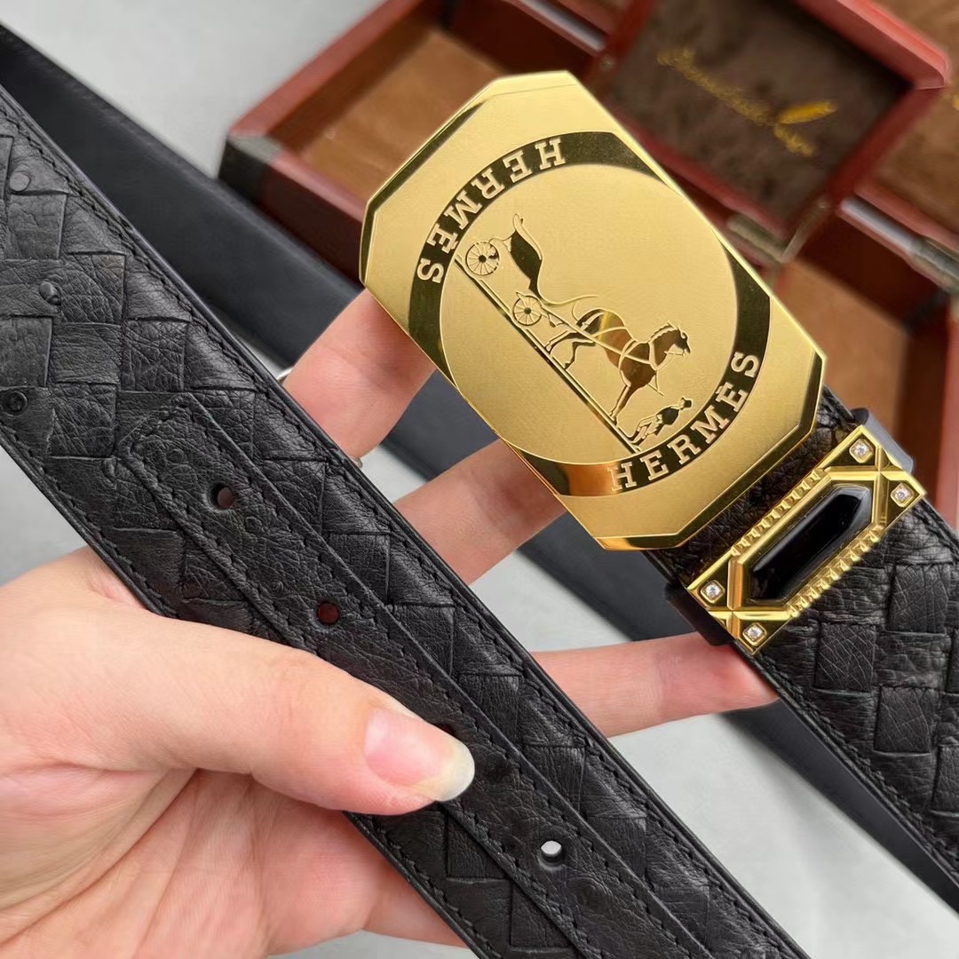 爱马仕原单鸵鸟系列,全球官网有售!带身采用美洲进口鸵鸟皮取腹皮没有接口手工穿叉编织《一位工人一天只能编2条》不一样的视觉冲击,精湛做工非市场所能媲美,海外代购最热系列 搭配定制原单钢扣3.8宽(永不掉色)秉承独特的设计风格引领时尚 高端品质 支持专柜验货!腰带皮带 亲们为保证质量 下单请认清细节及配件 我们只做高端品质。