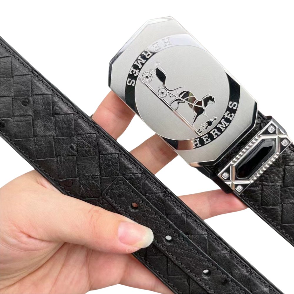 HERMES 爱马仕 3.8cm 美洲鸵鸟腹皮 纯手工编制 平滑扣