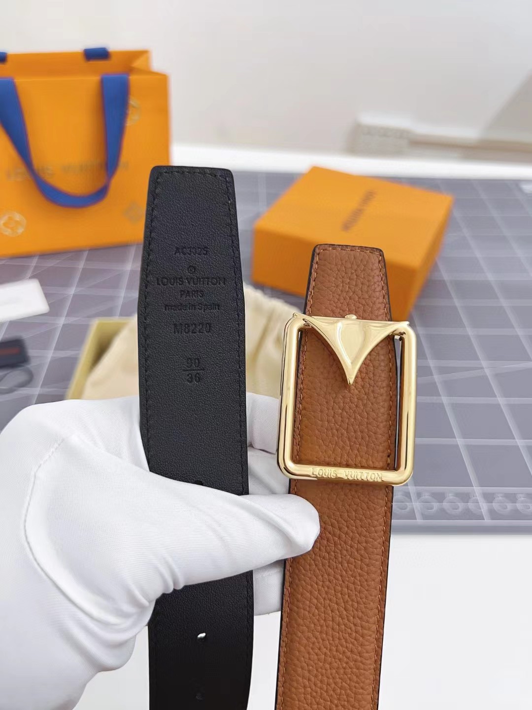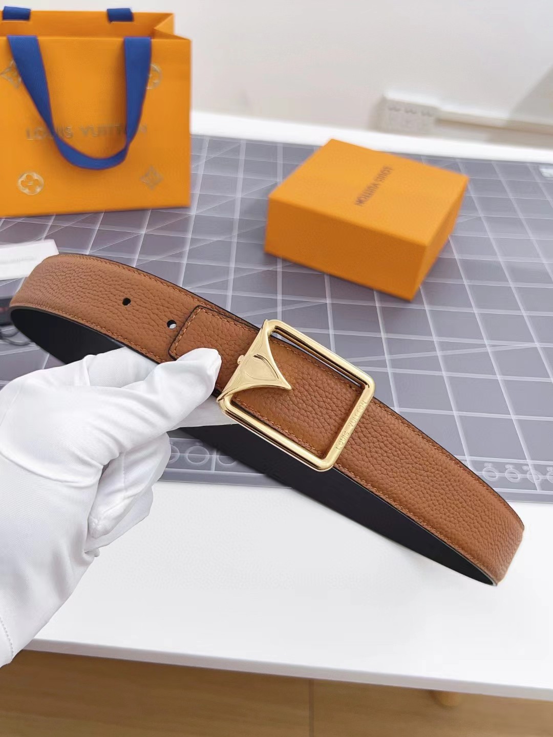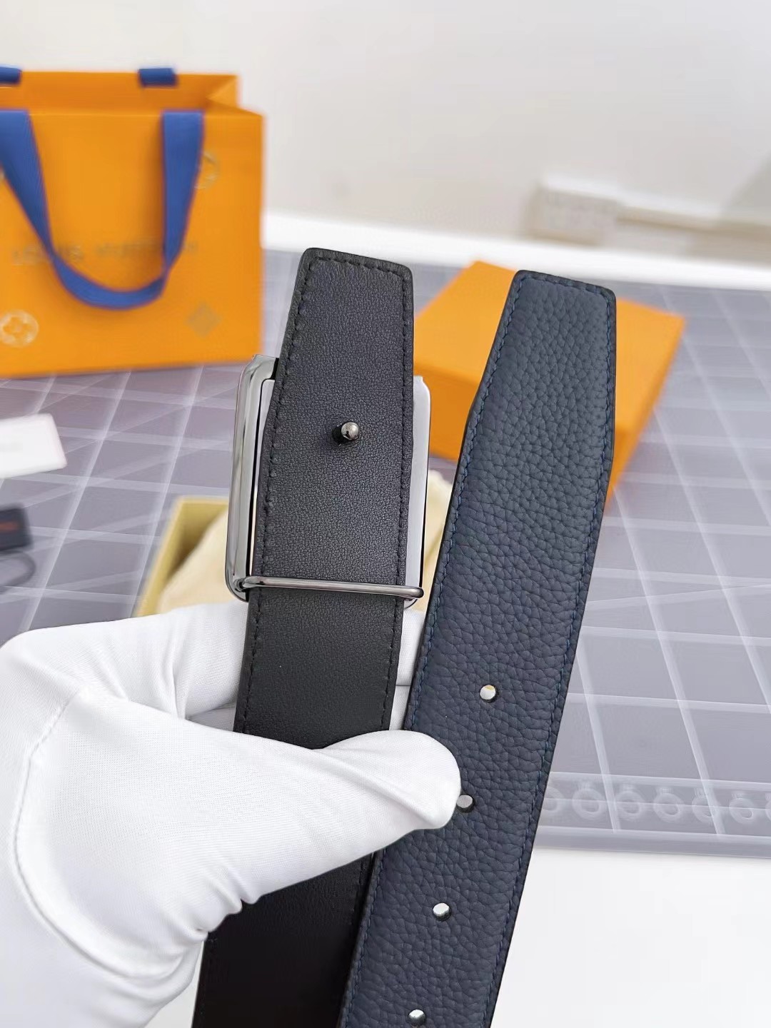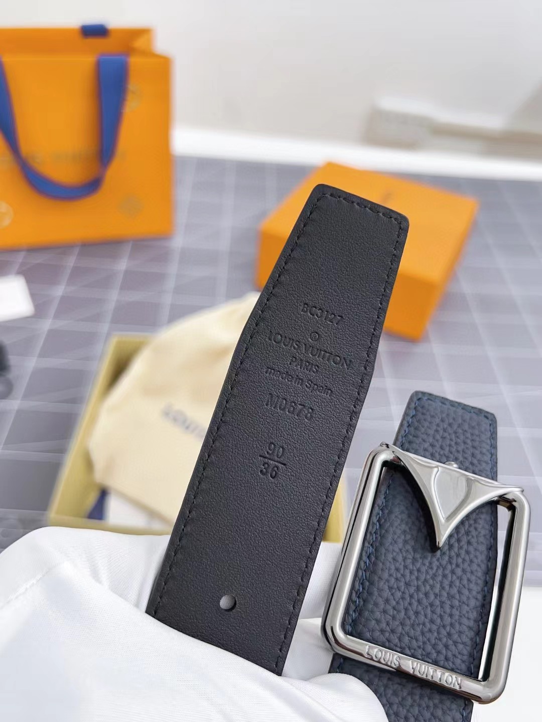 收到皮带就打开包装,全方位拍照看看有没有瑕疵,品相完美,感谢!