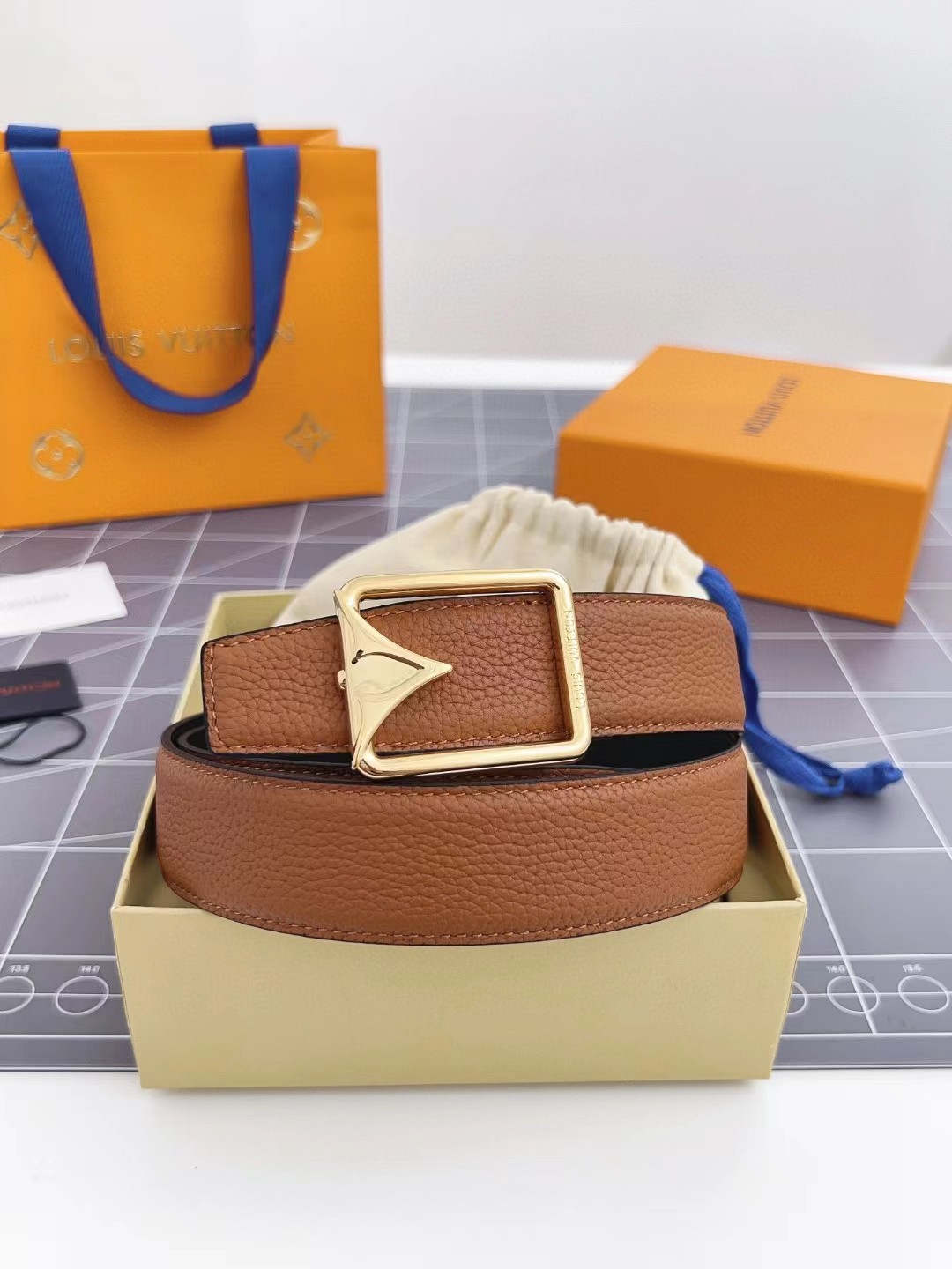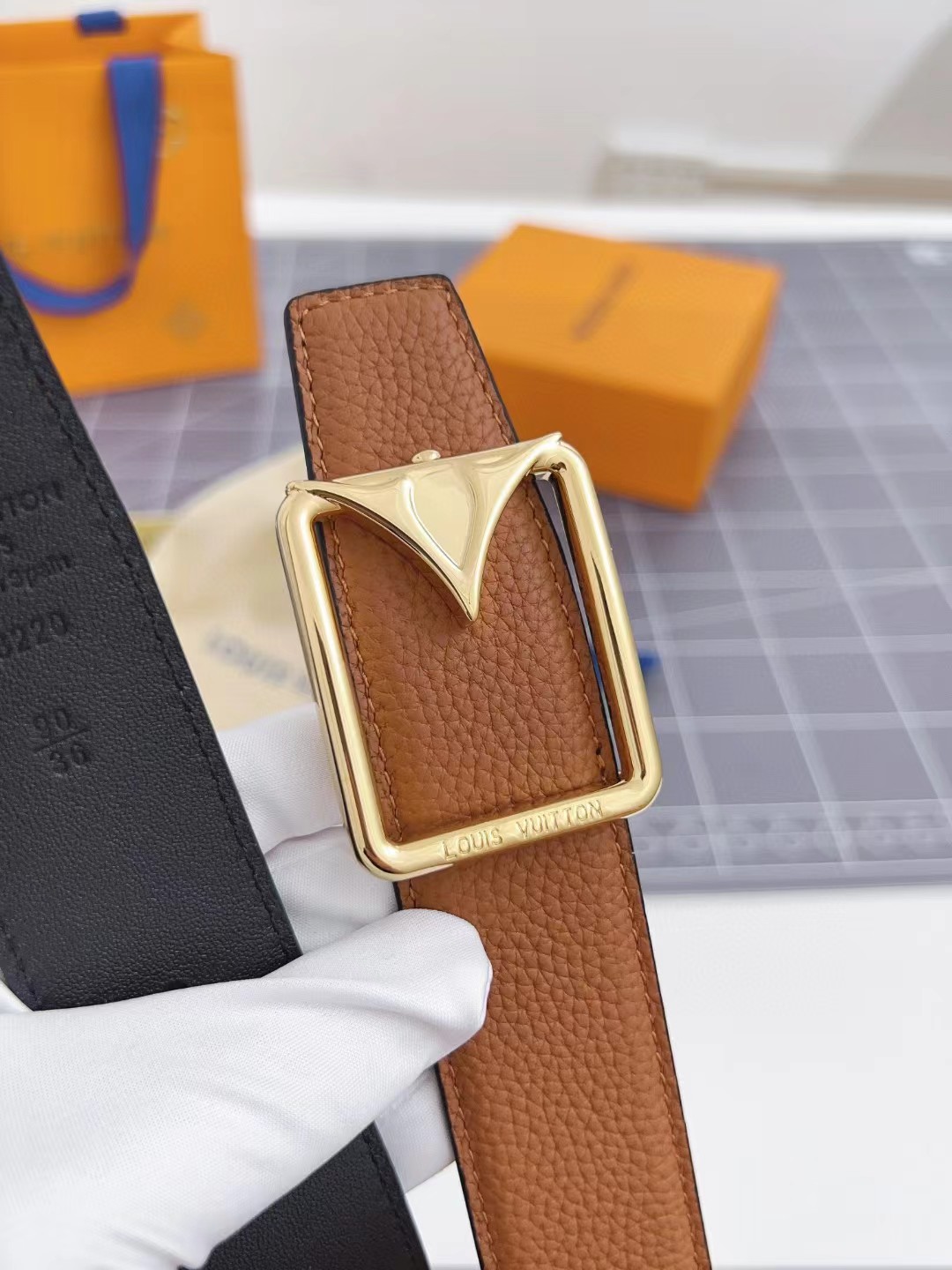 LOUIS VUITT0N 路易威登 粒面牛皮革 35mm 平滑扣