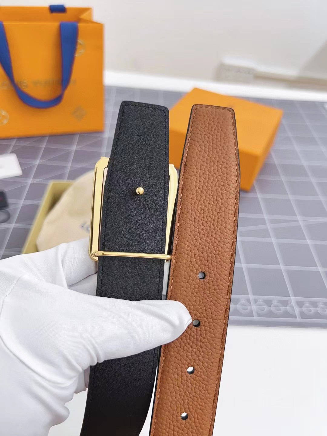 皮带非常喜欢,跟朋友的正品对比,皮质手感一模一样,很惊讶。黑色好搭配衣服,感谢