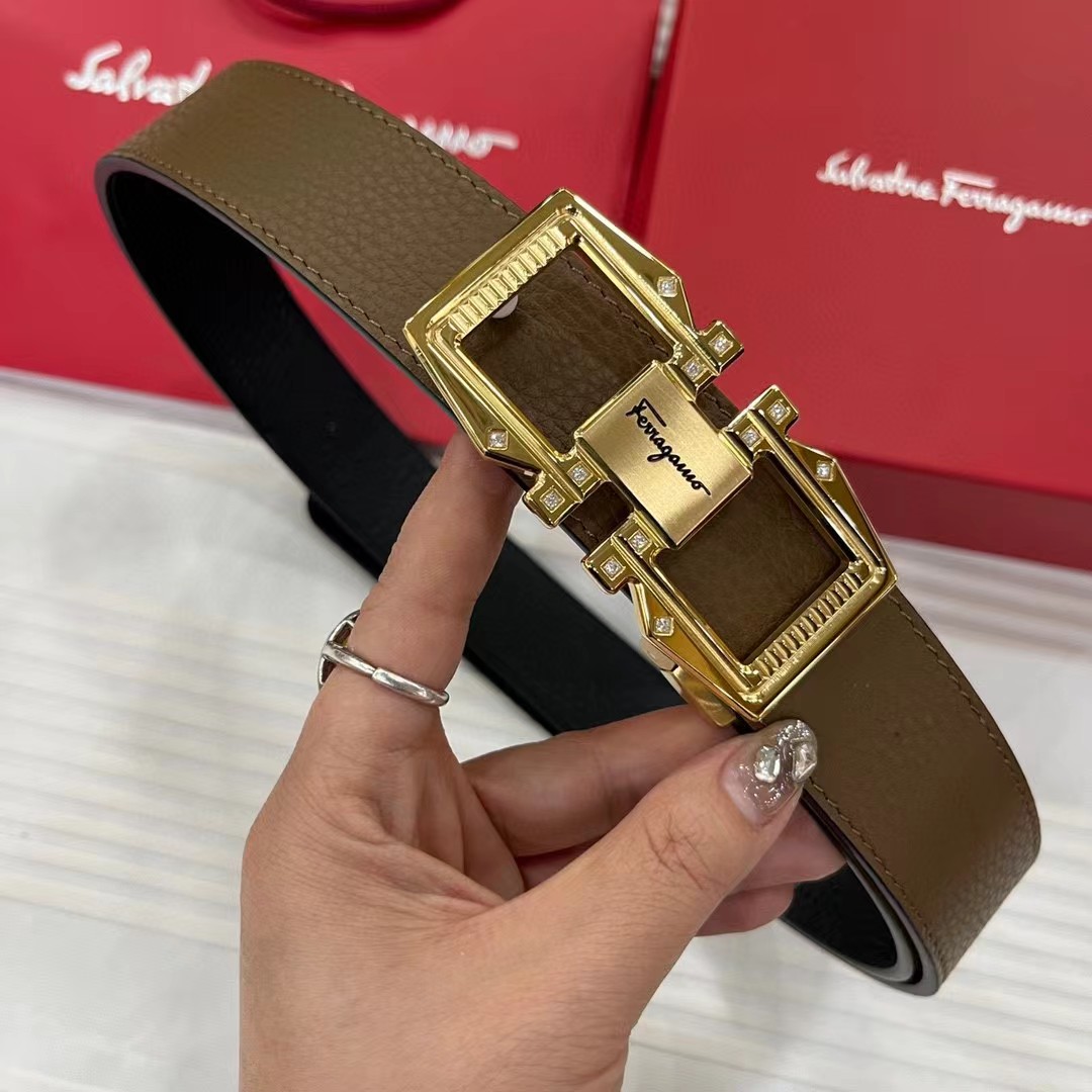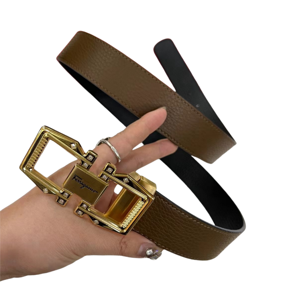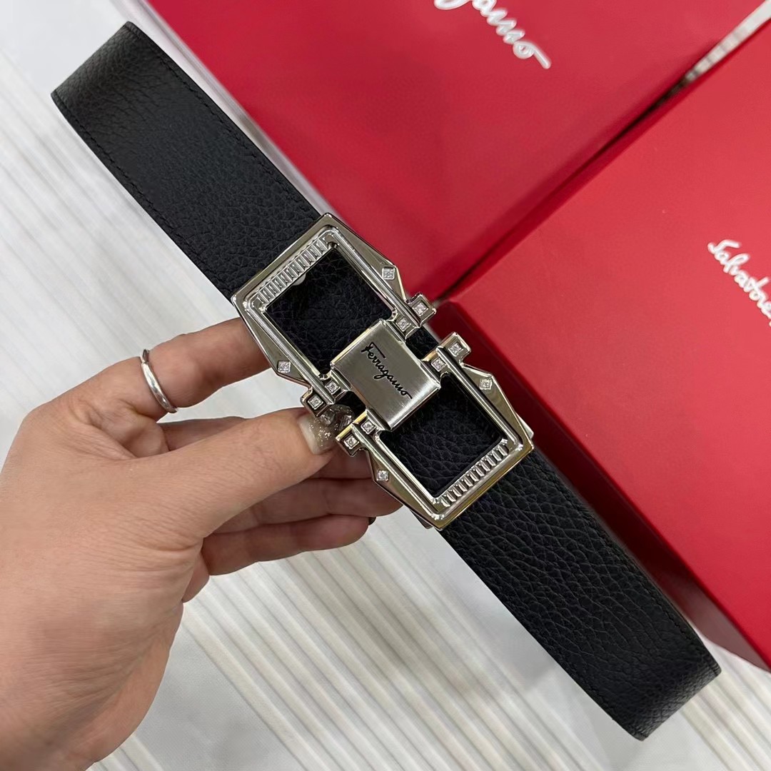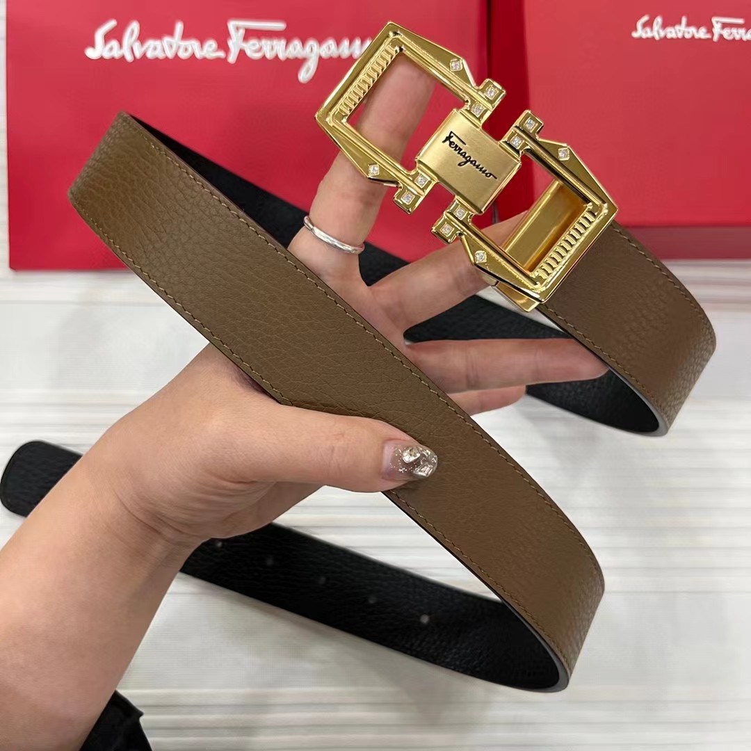 FERRAGAMO 菲拉格慕 3.5cm 双面两用牛皮革压纹 平滑扣