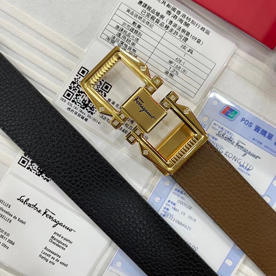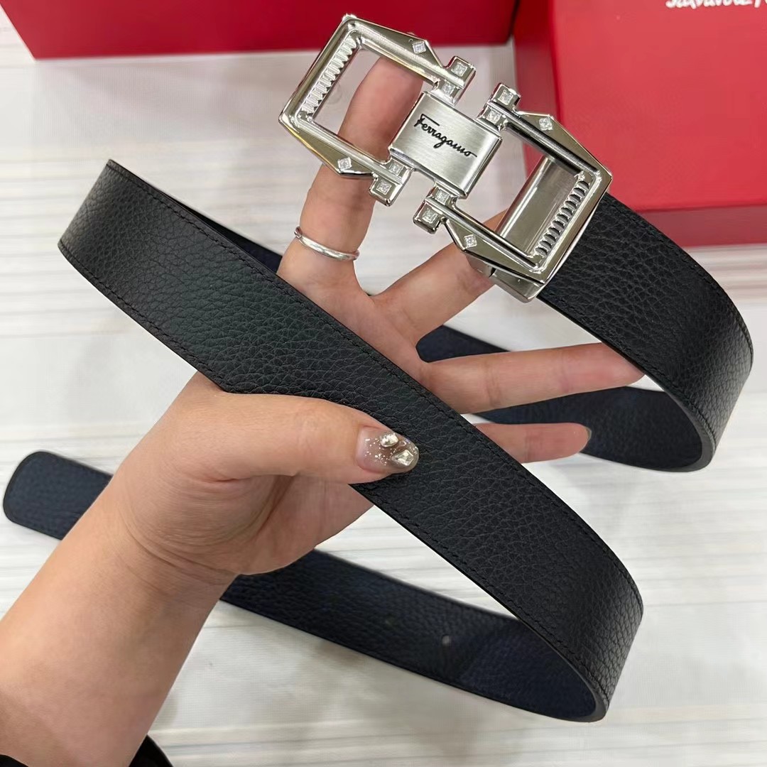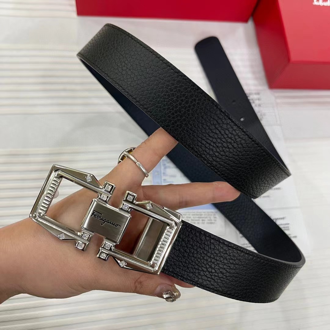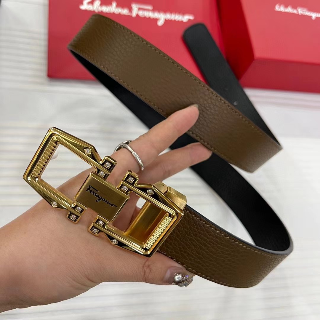FERRAGAMO 菲拉格慕 3.5cm 双面两用牛皮革压纹 平滑扣