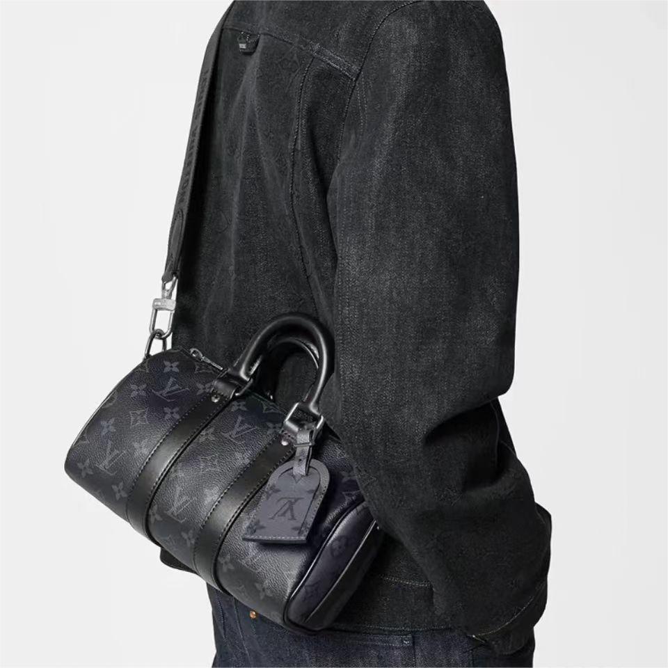 【介绍】 海外原单 电子芯片内码 Keepall City25 免税版 ,Keepall 系列一直是潮男们的最爱,同时也是潮男们日常使用最高频率的包包,尤其是黑老花色,低调又帅气十足,男女皆可,小巧又能装,凹造型神器!容纳量满足于日常使用,兼顾实用和美观,简直妥妥的无死角的设计,又酷又飒的颜值!