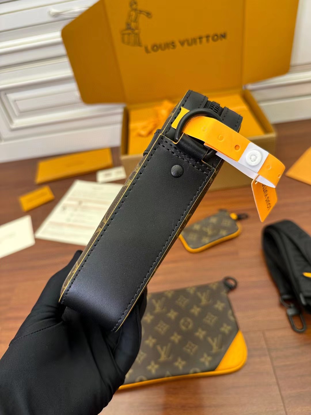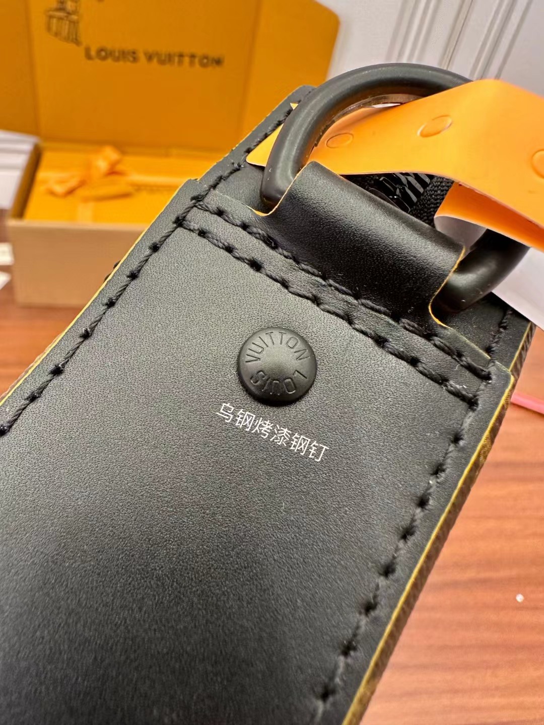 收到皮带就打开包装,全方位拍照看看有没有瑕疵,品相完美,感谢!
