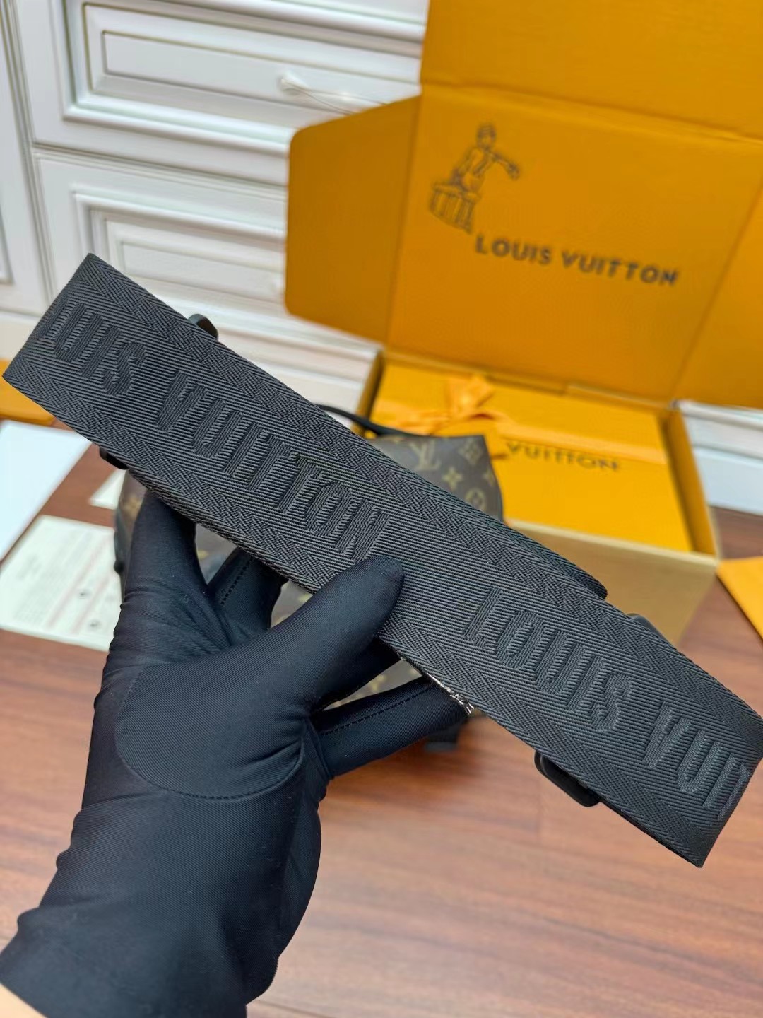收到皮带就打开包装,全方位拍照看看有没有瑕疵,品相完美,感谢!