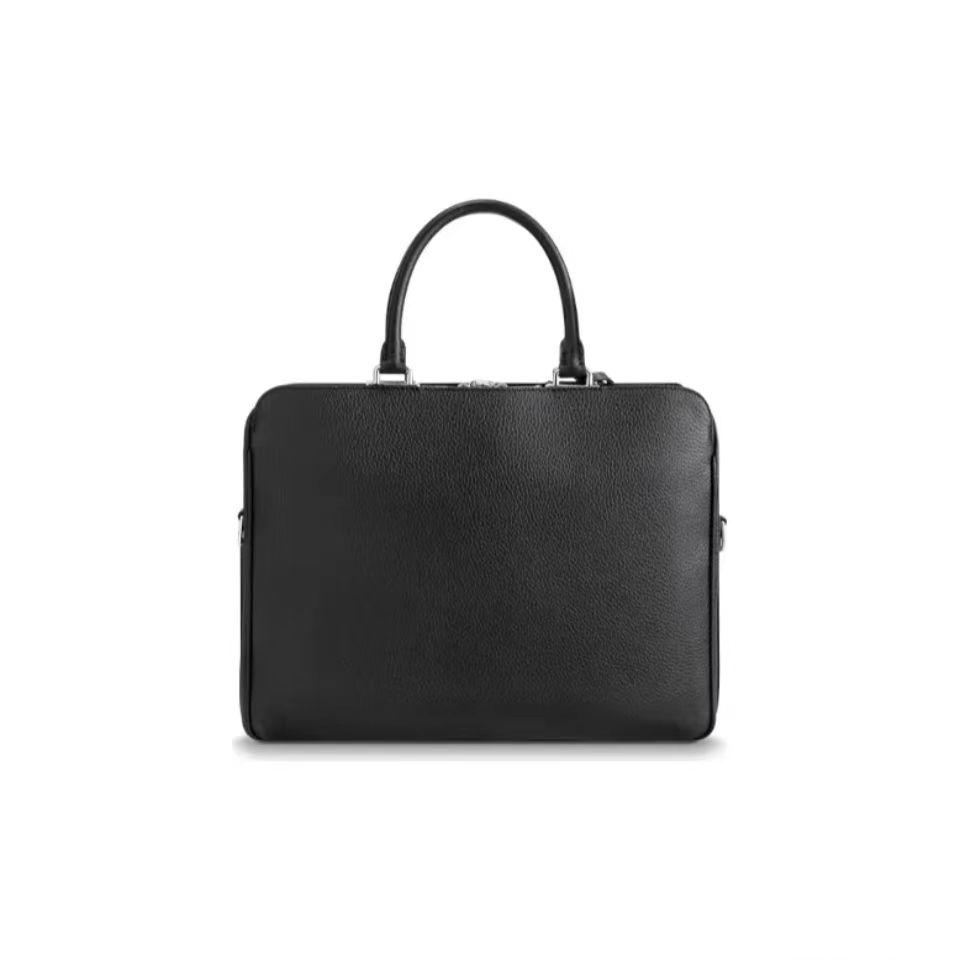 【介绍】 海外原单 黑色荔枝纹 全皮公文包系列 此款以全粒面Taurillon小牛皮打造而成的结实公文包是实用性与至高优雅风格的结合。复合隔层设计,包括一个宽大的拉链隔层,可收纳笔记本电脑或重要的商务文件,另设一对宽口袋,方便取用报纸等私人物。