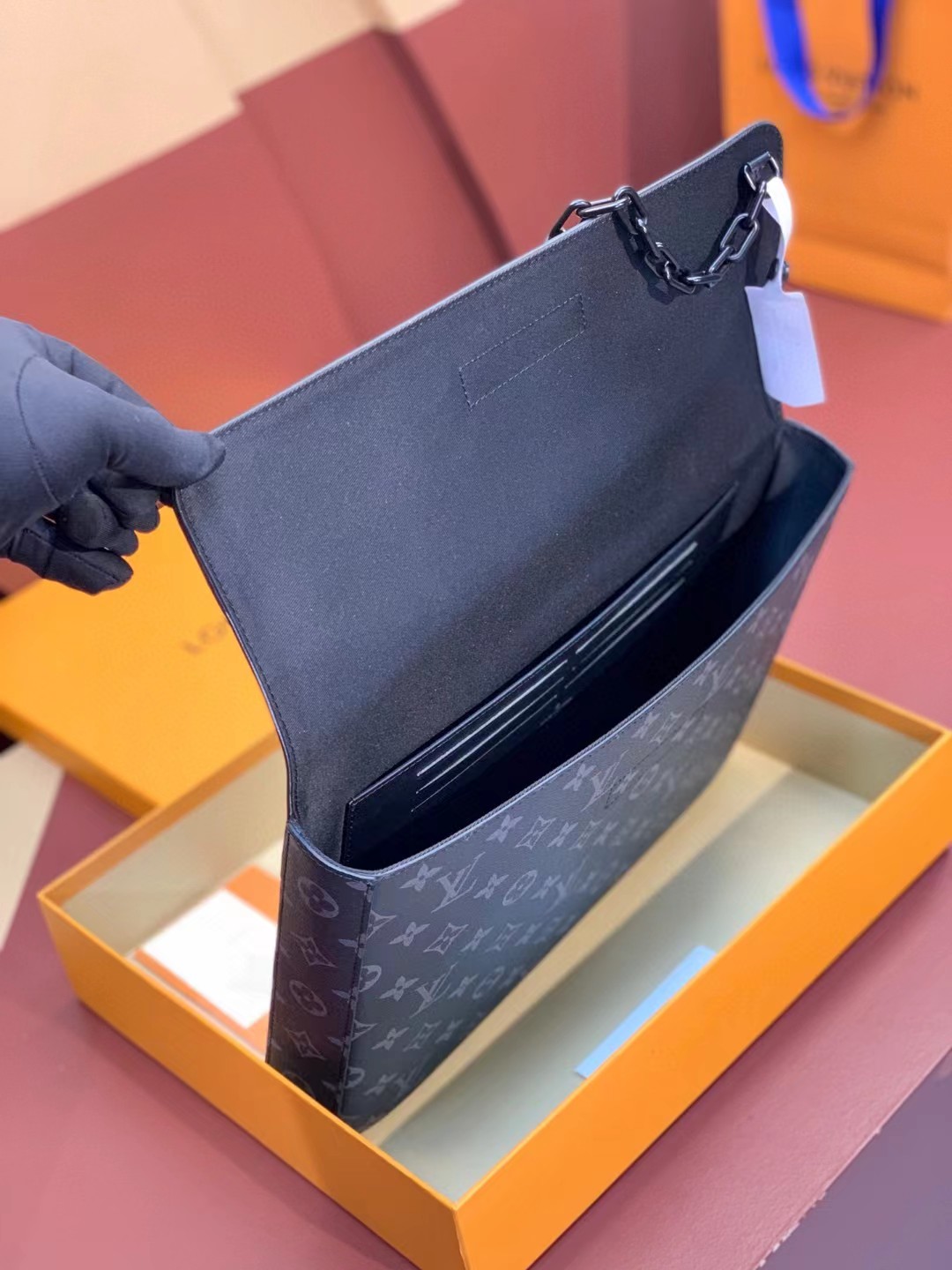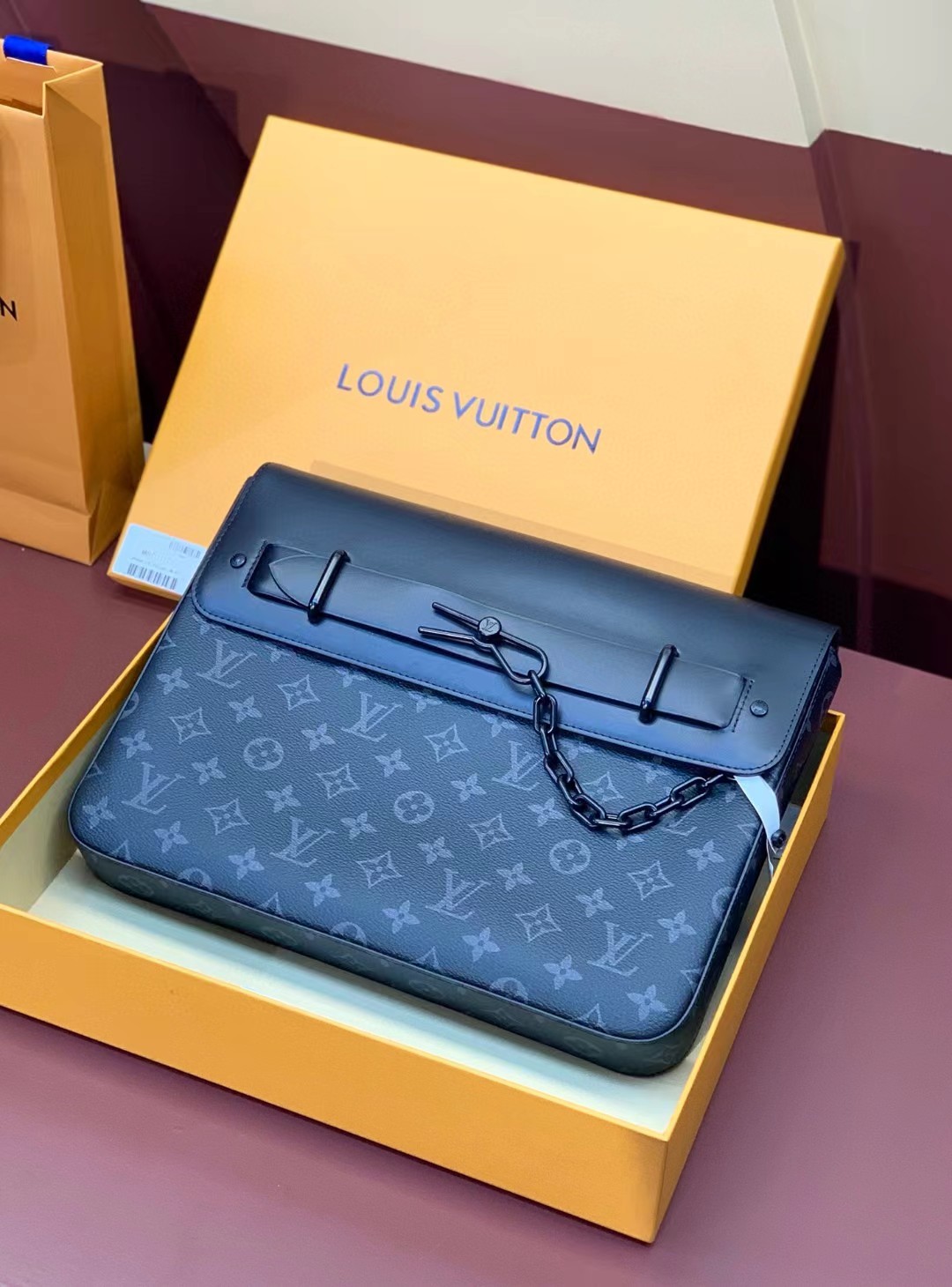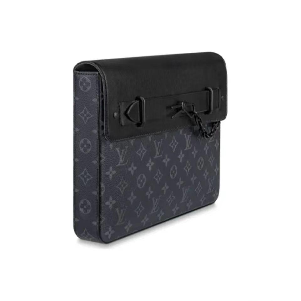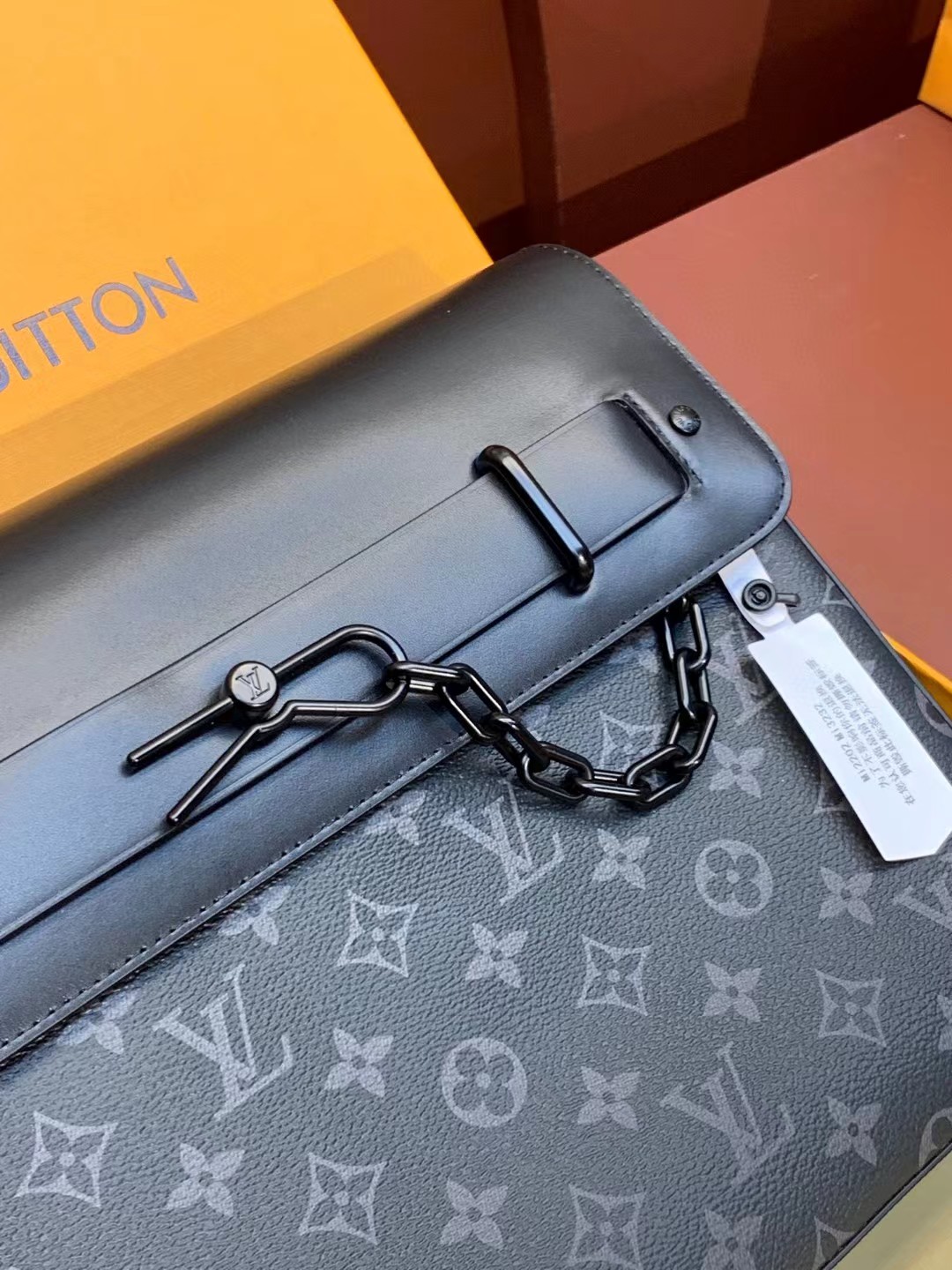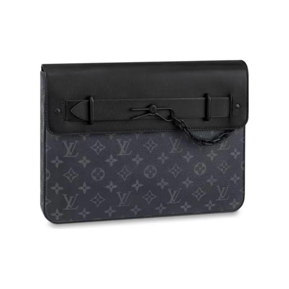 【介绍】 Pochette Steamer 手袋,POCHETTE STEAMER 手袋将传统Monogram Eclipse 帆布的经典造型与黑色金属链条等别具一格的标志性元素融于一体 收纳空间充裕 可容纳文件和笔记本电脑 同时搭配 6 个卡片插槽和 1 个磁铁锁扣 确保物品安全无虞 便于工作或旅行时携带日常用品 时尚有型。