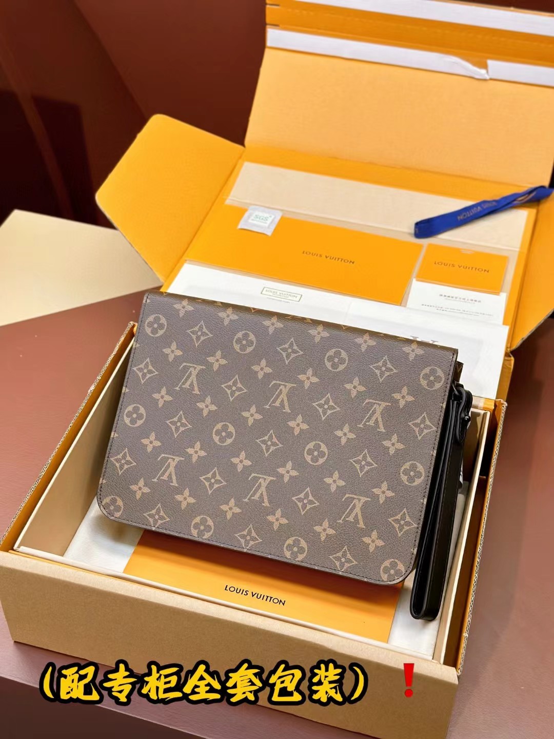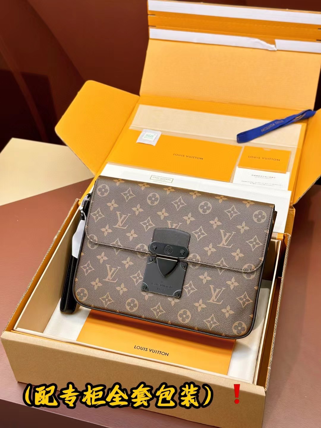 LOUIS VUITT0N 路易威登 Monogram Macassar SLOCK 4A 涂层帆布皮革 情侣款手包