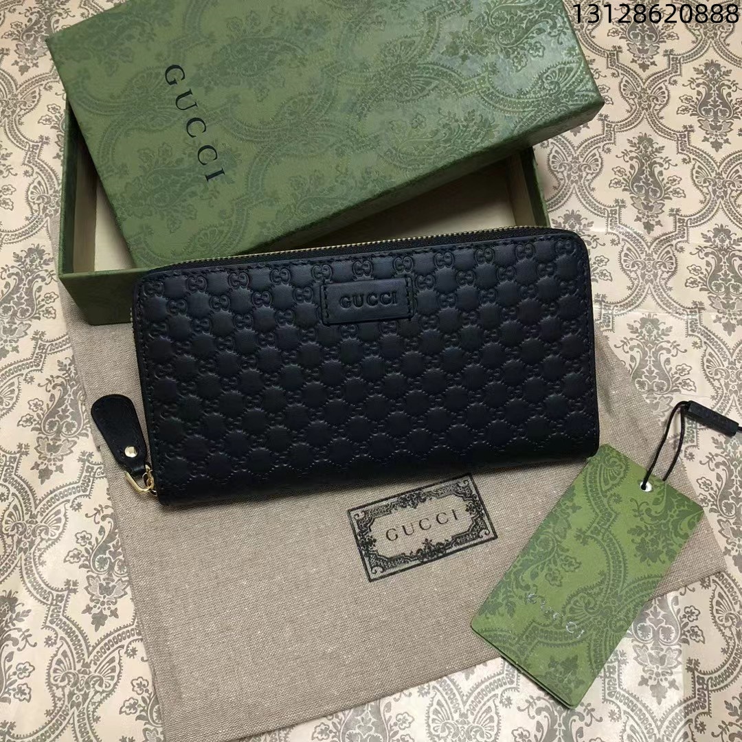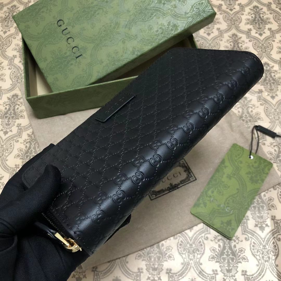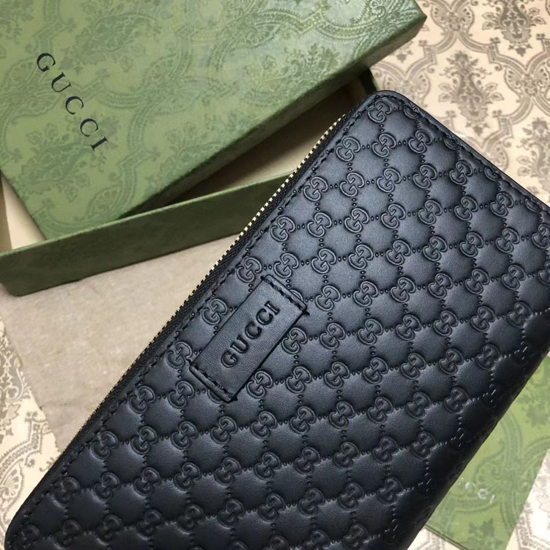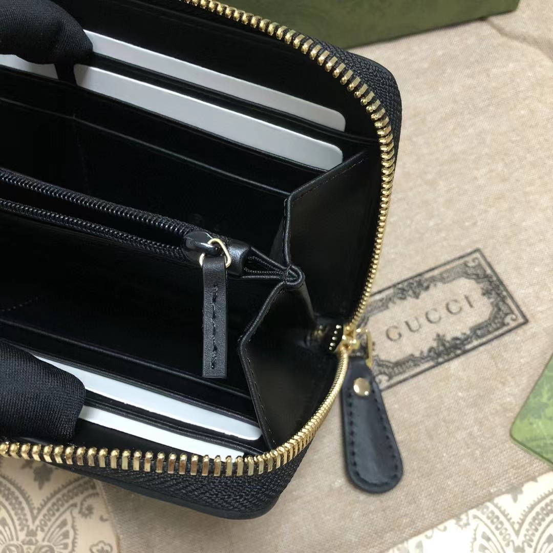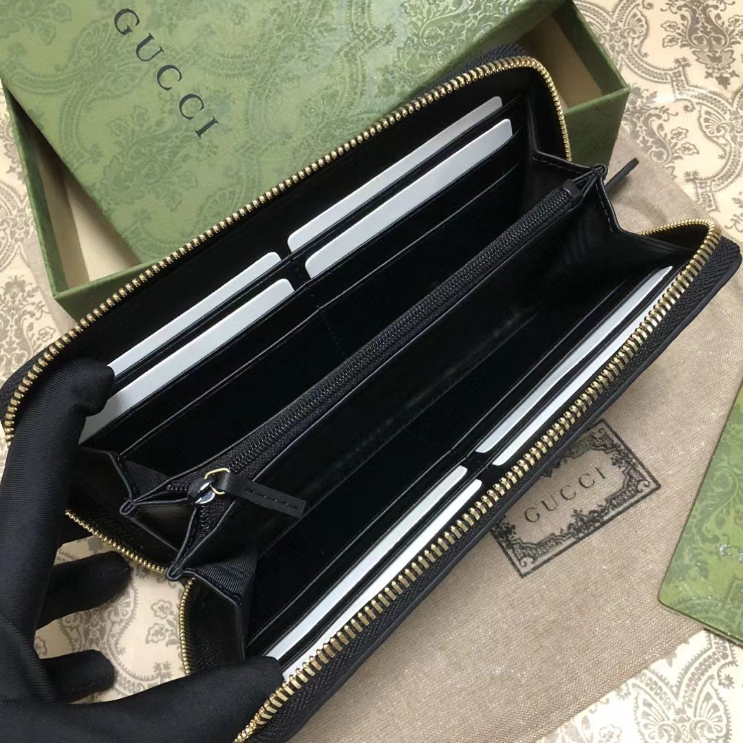 Gucci 古驰 老花Logo压纹长款拉链开合 牛皮钱夹钱包