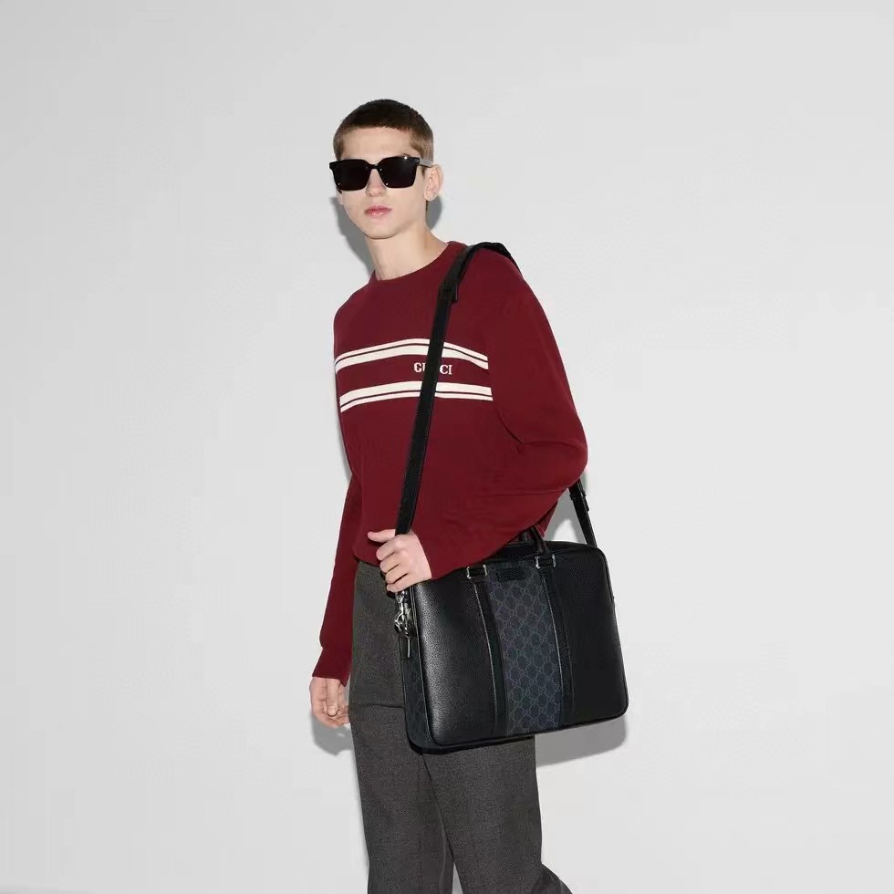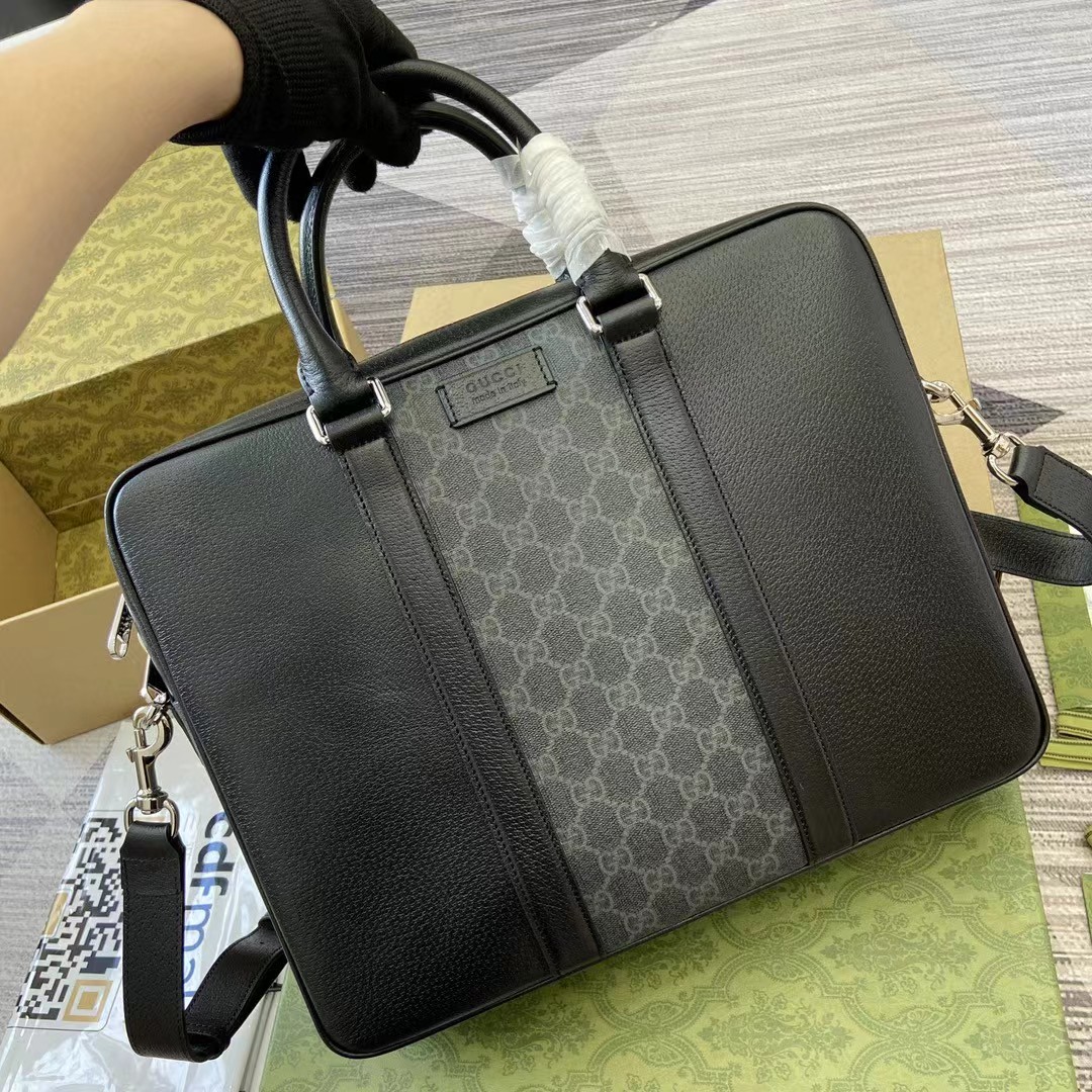 Gucci 古驰 皮革拼GG Supreme帆布 公文包