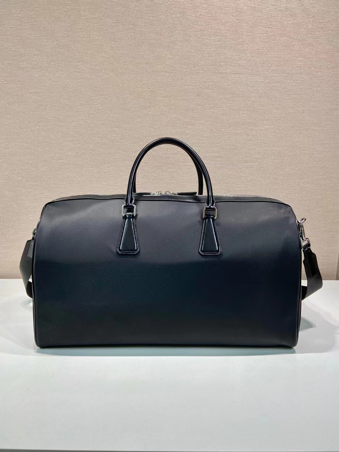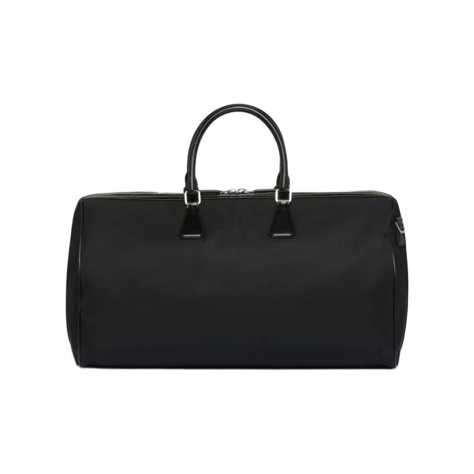 【介绍】 海外原单 新款旅行包这款旅行包选用创新的再生尼龙面料Re-Nylon打造,搭配精致考究的亮面皮革细节。两个内袋带来充裕的储物空间,搭配优雅的皮革提手与可拆卸肩带。便捷优雅,涂珐琅三角形金属徽标彰显品牌经典特色。空间大/又简约大气/又时尚,赶紧入手吧。
