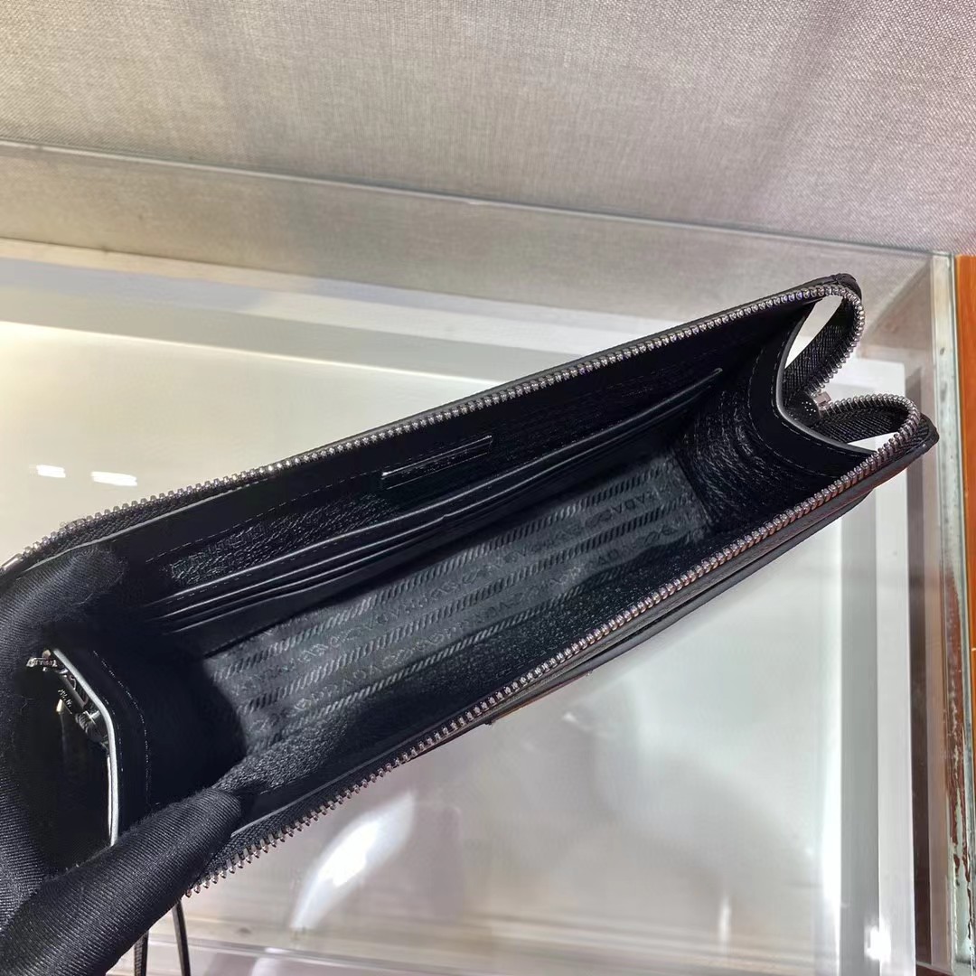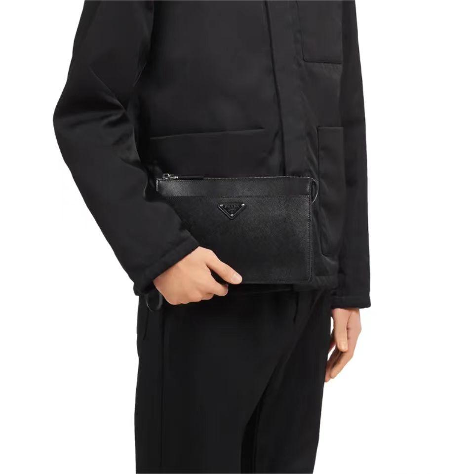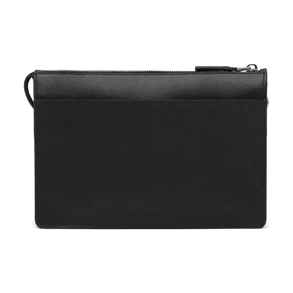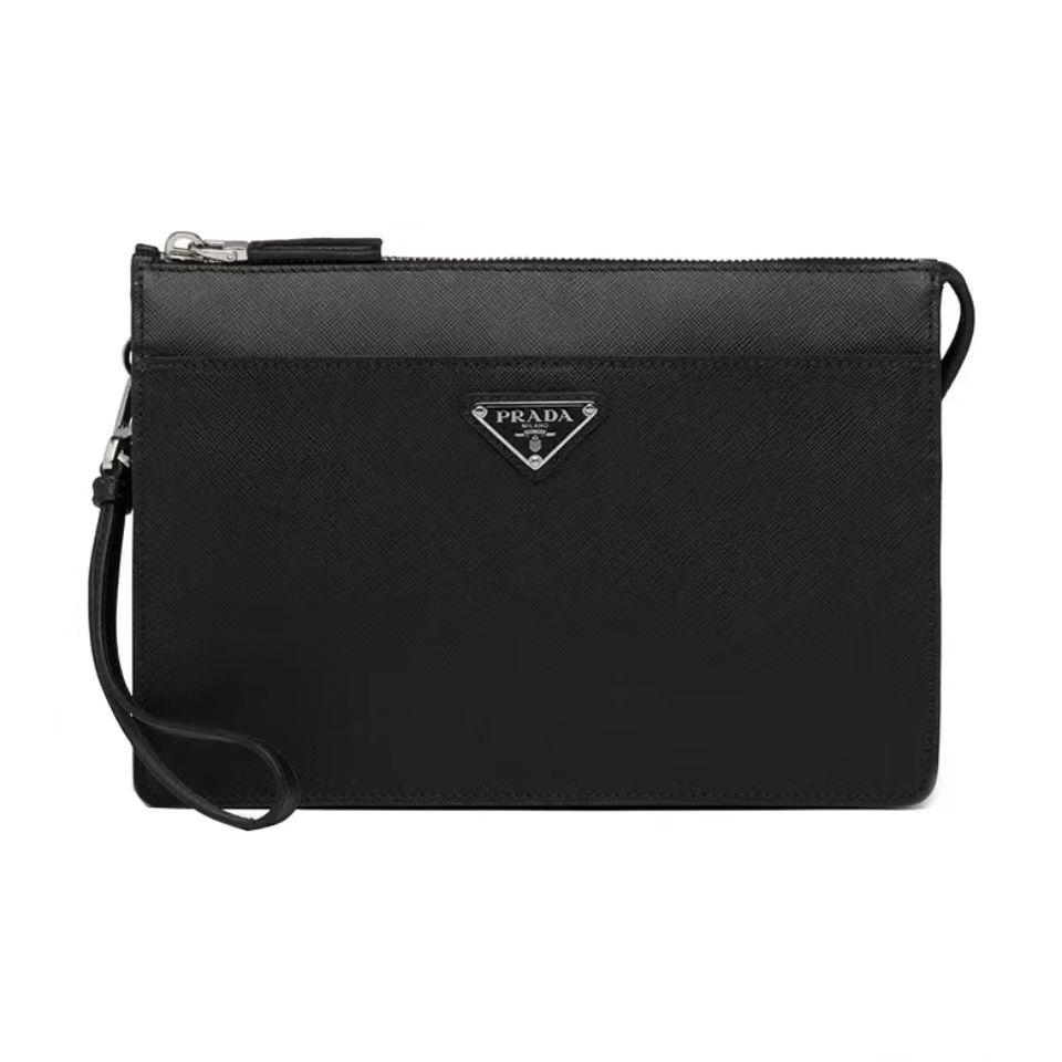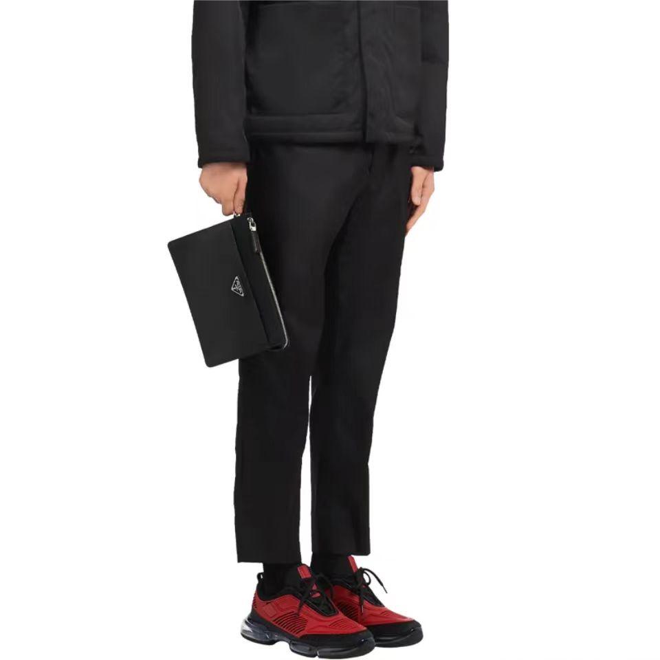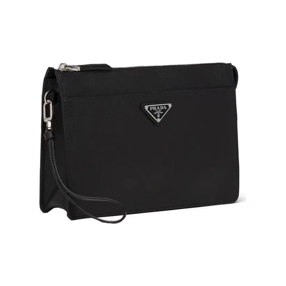 PRADA 普拉达 Saffiano 三角形珐琅金属徽标 皮革手拿包