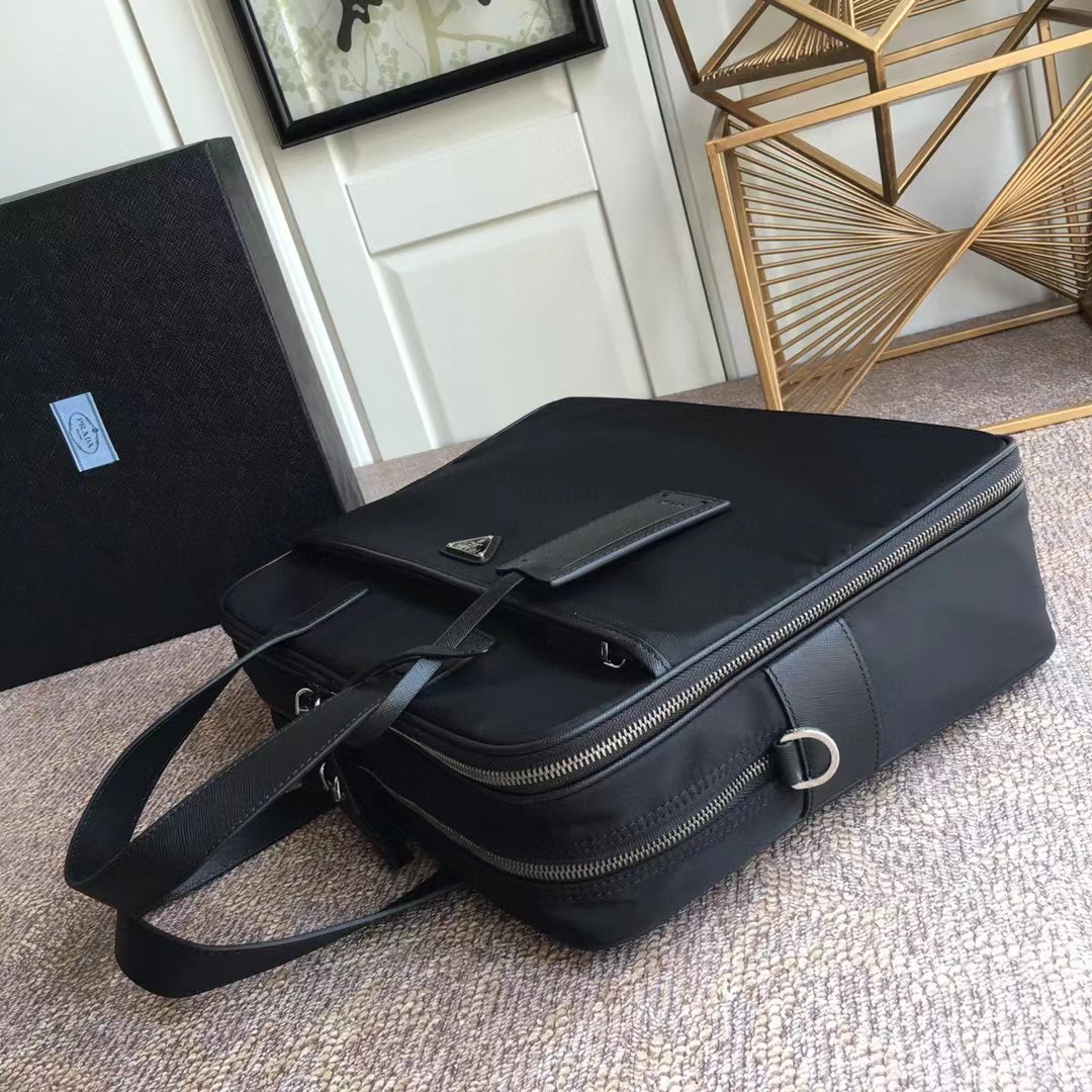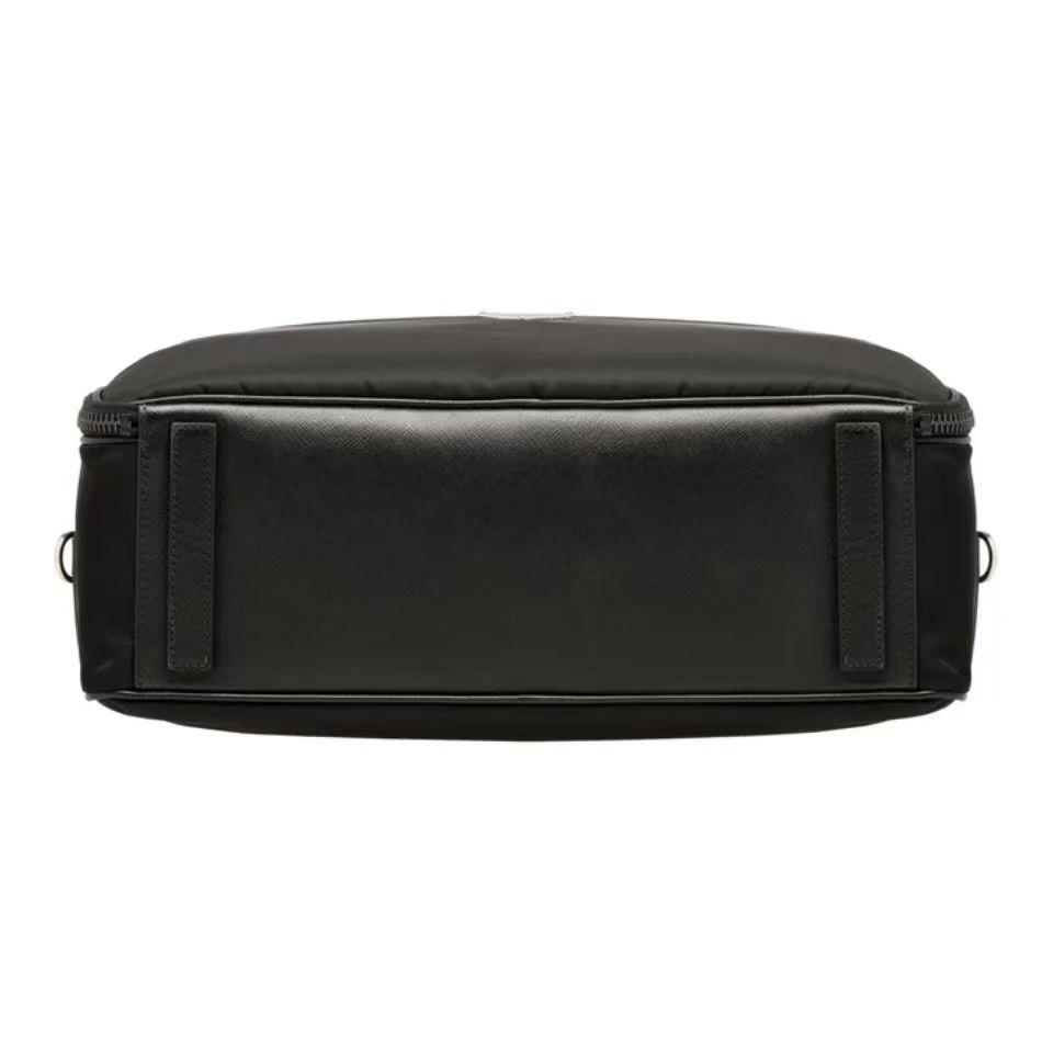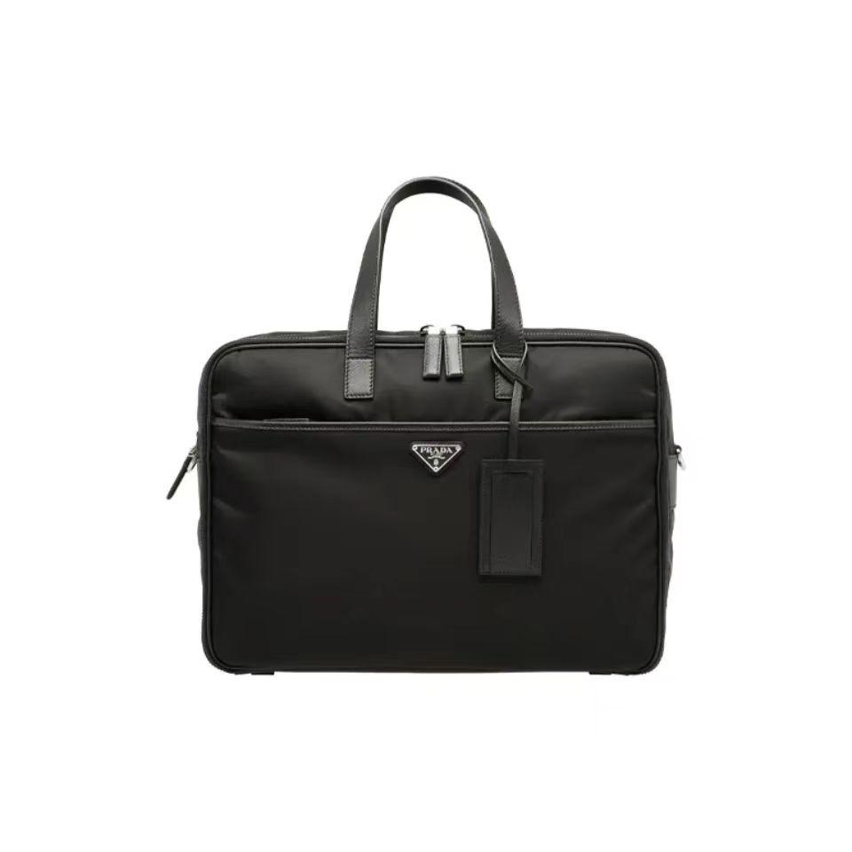 PRADA 普拉达 简约双拉链开合 你弄拼皮革 单肩斜挎手提公文包