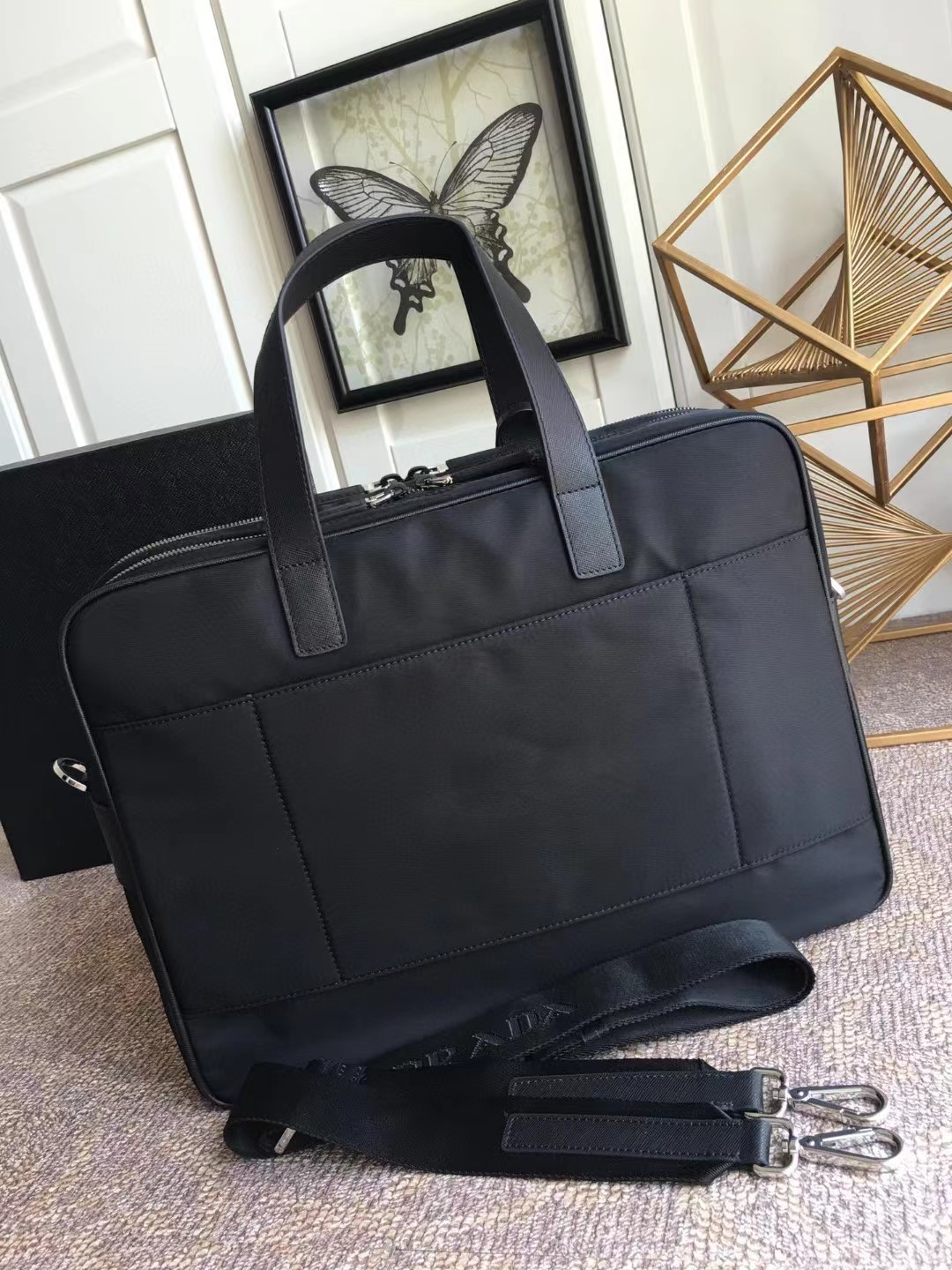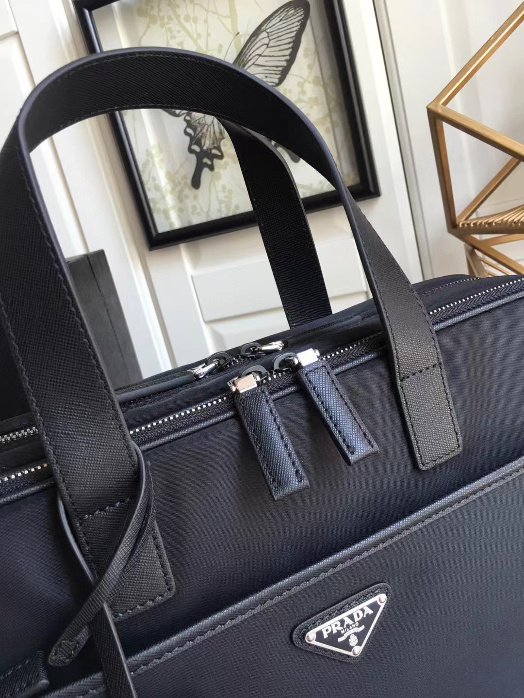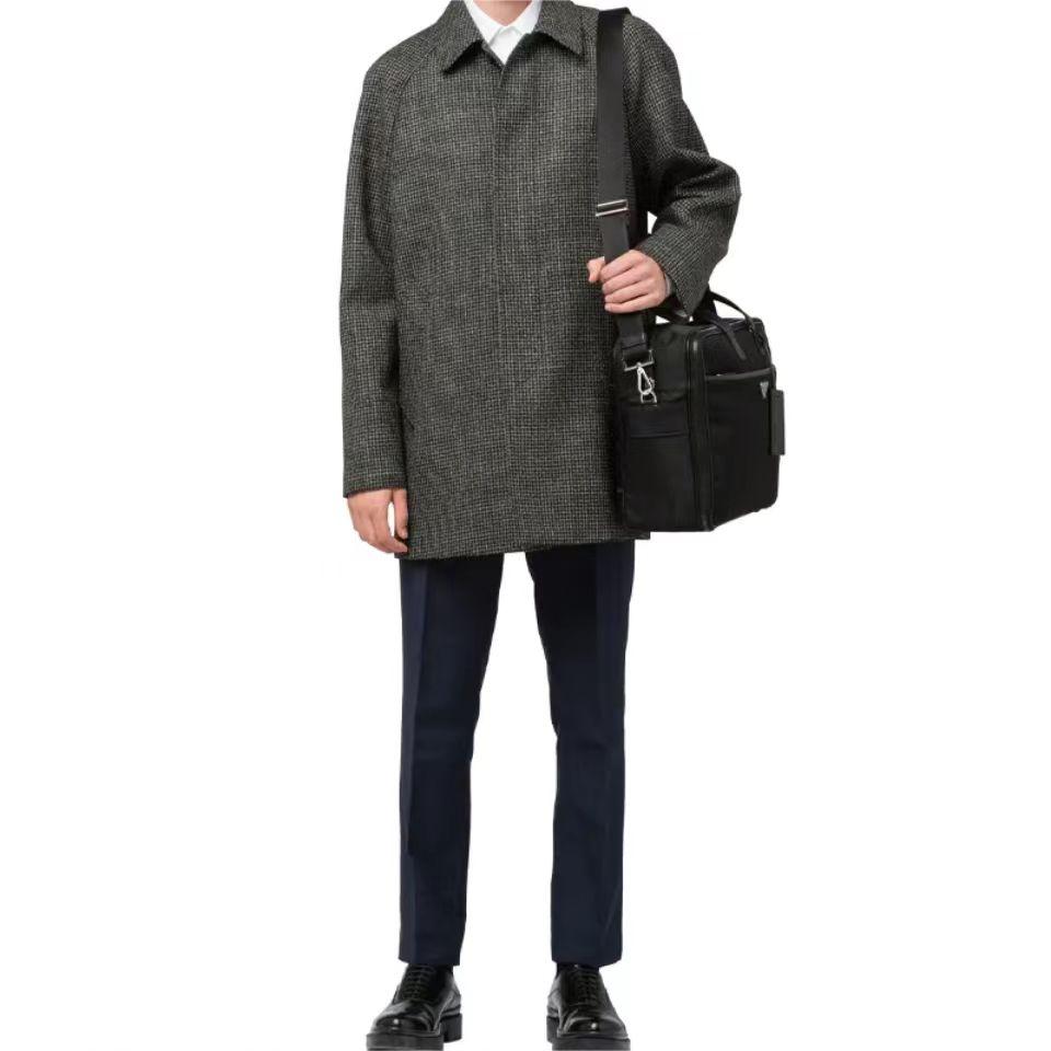 PRADA 普拉达 简约双拉链开合 你弄拼皮革 单肩斜挎手提公文包