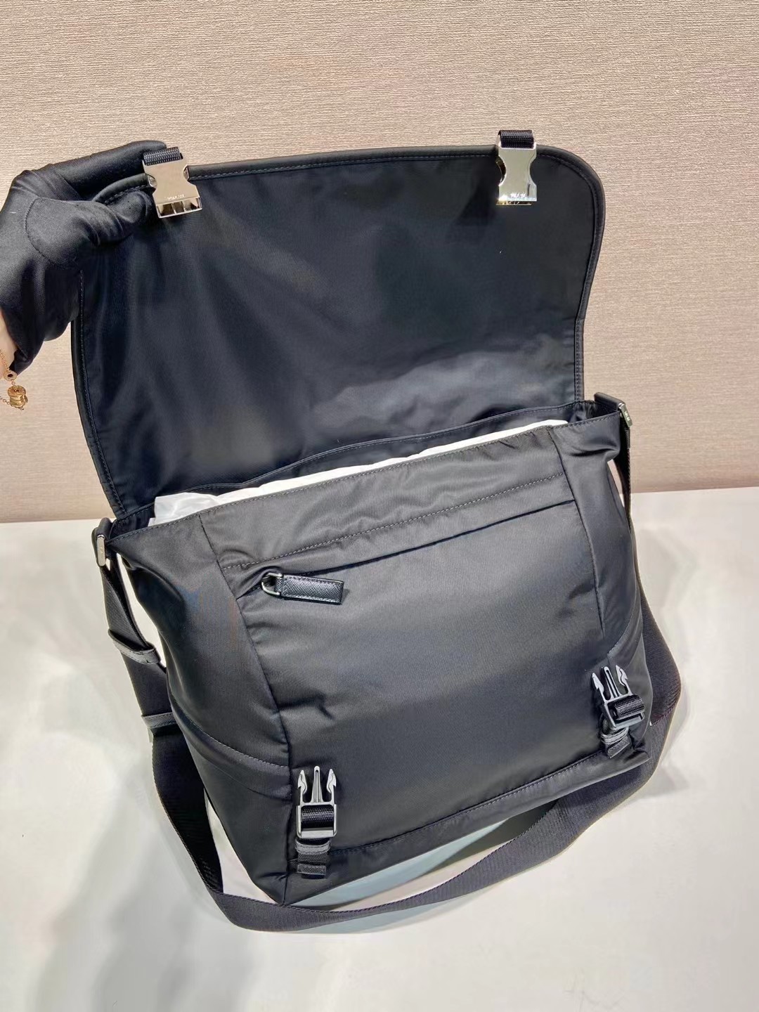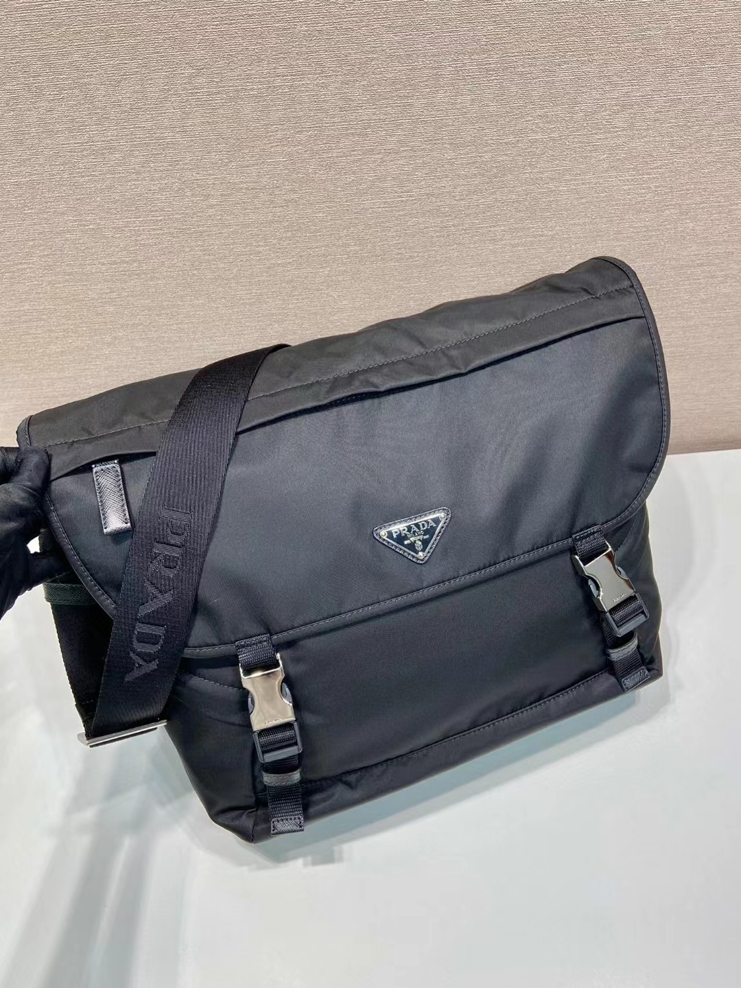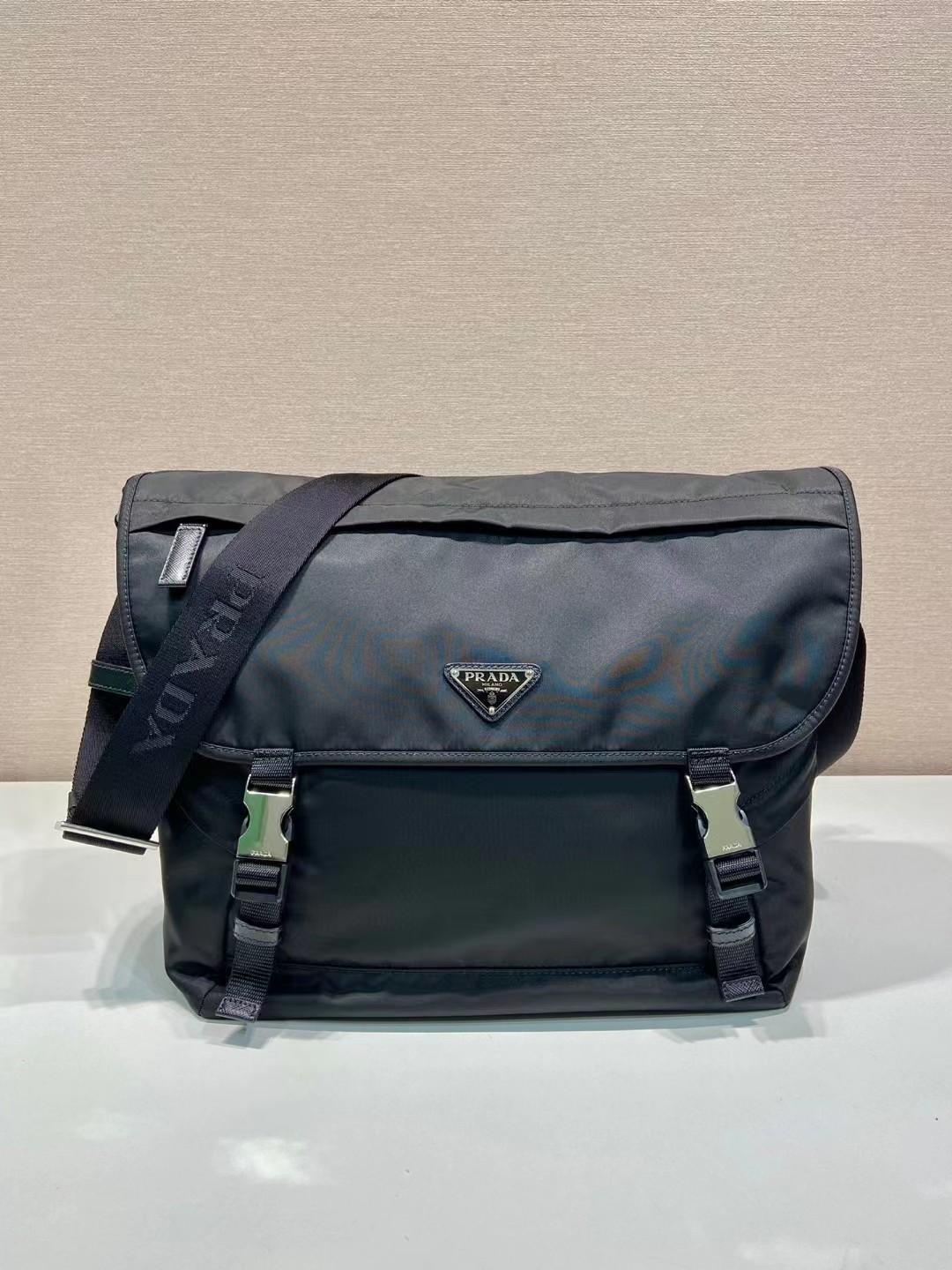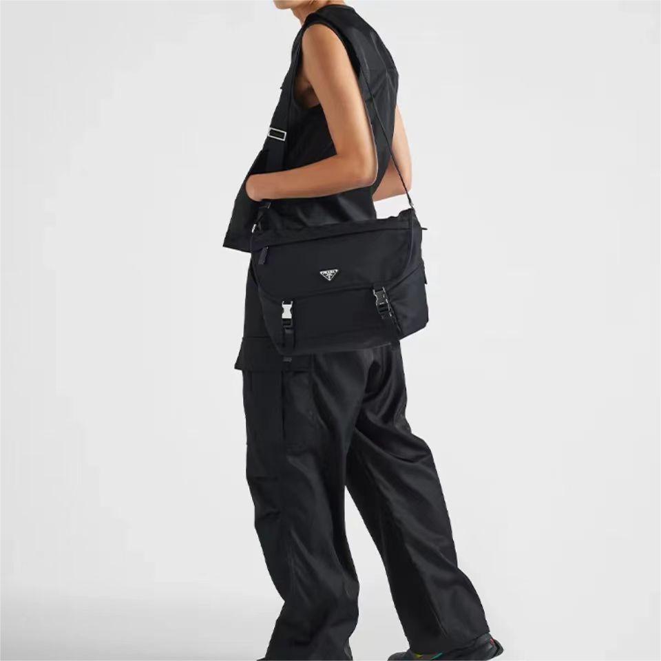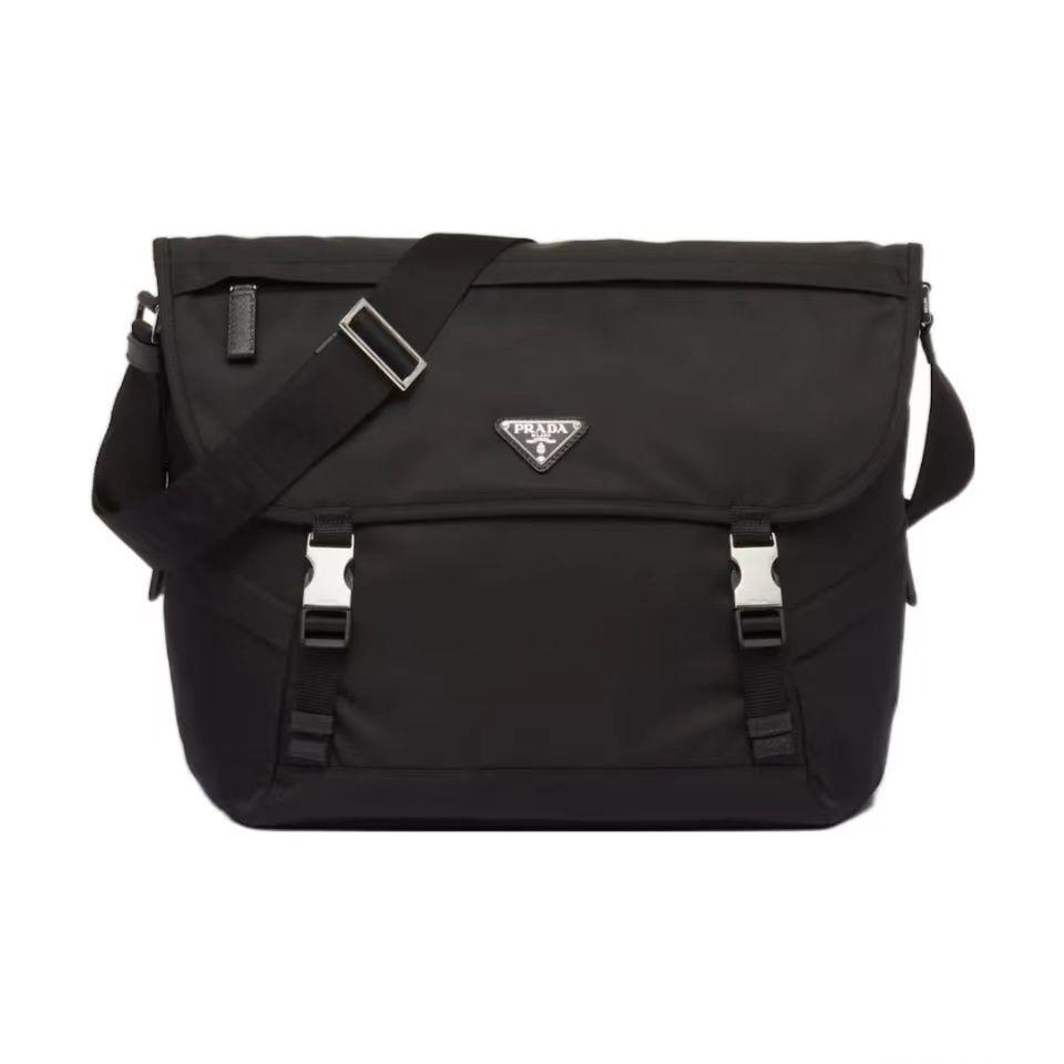 PRADA 普拉达 再生尼龙拼皮革 单肩斜挎邮差包