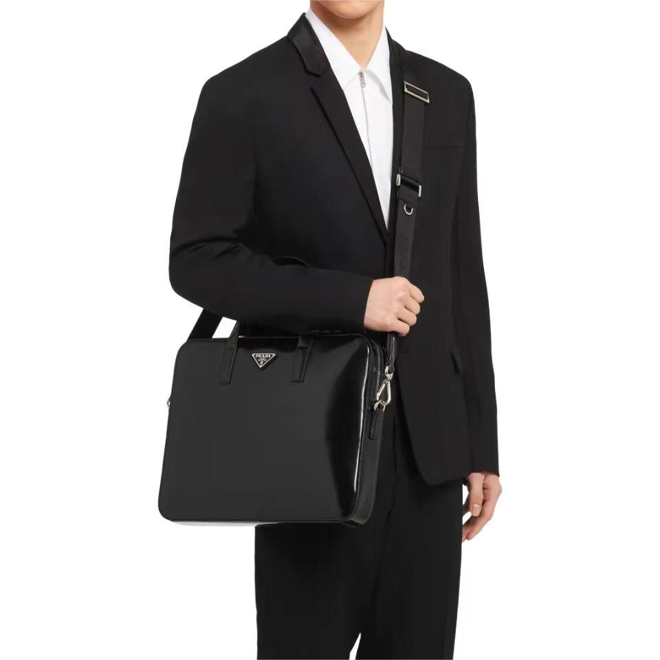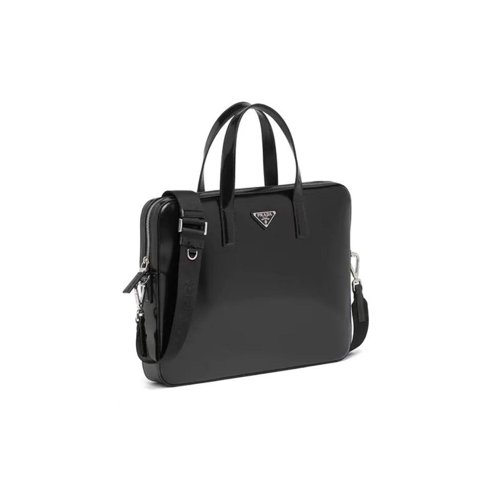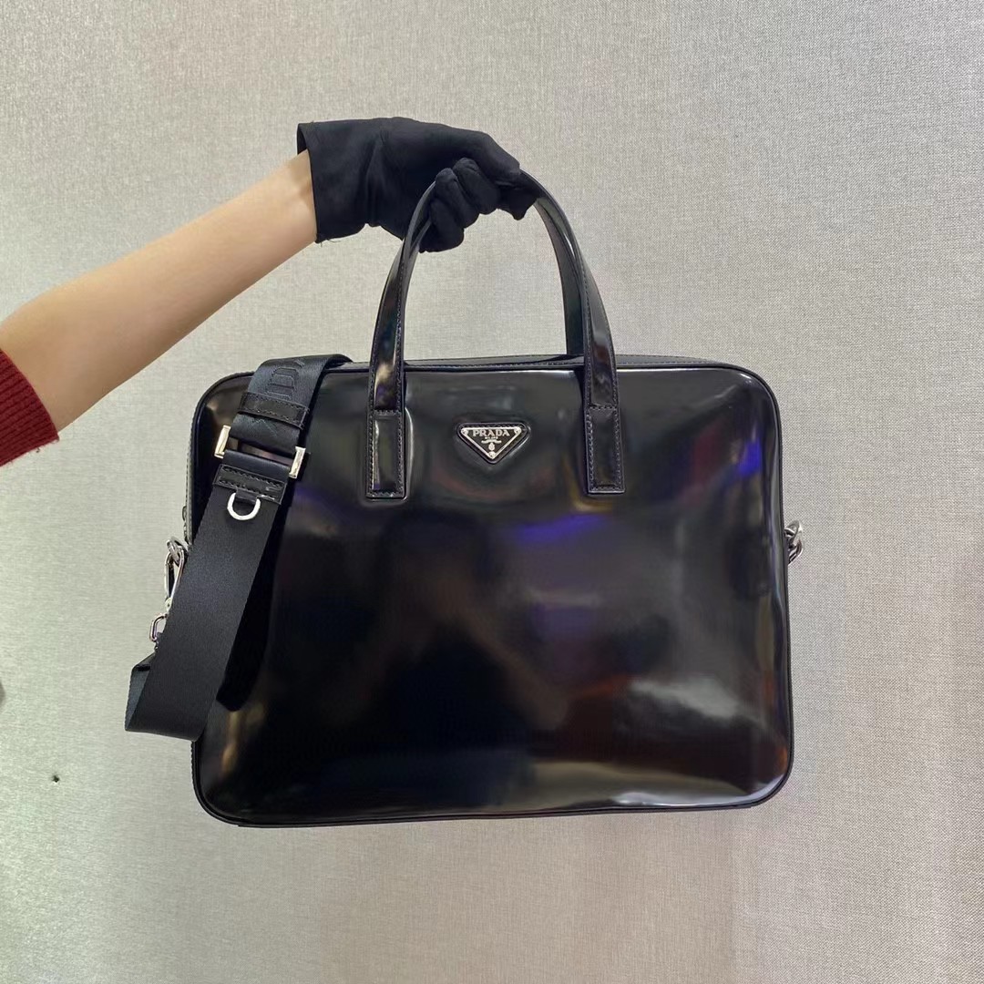 PRADA 普拉达 亮面皮革 手提公文包