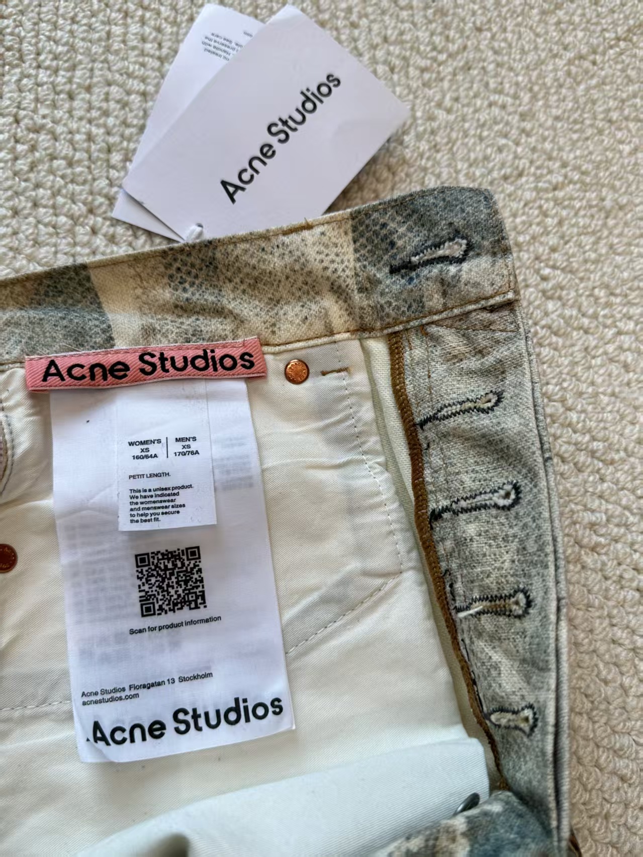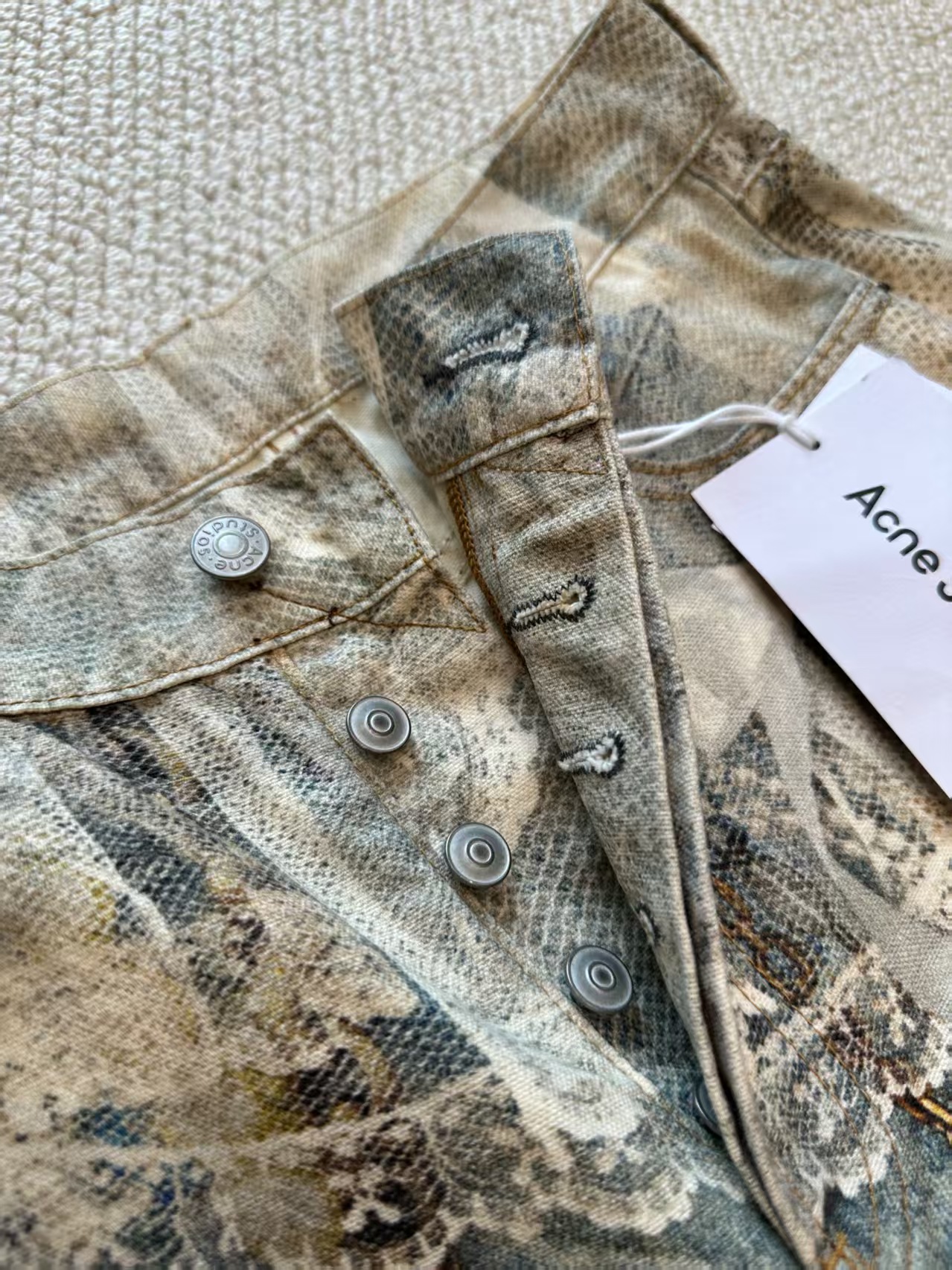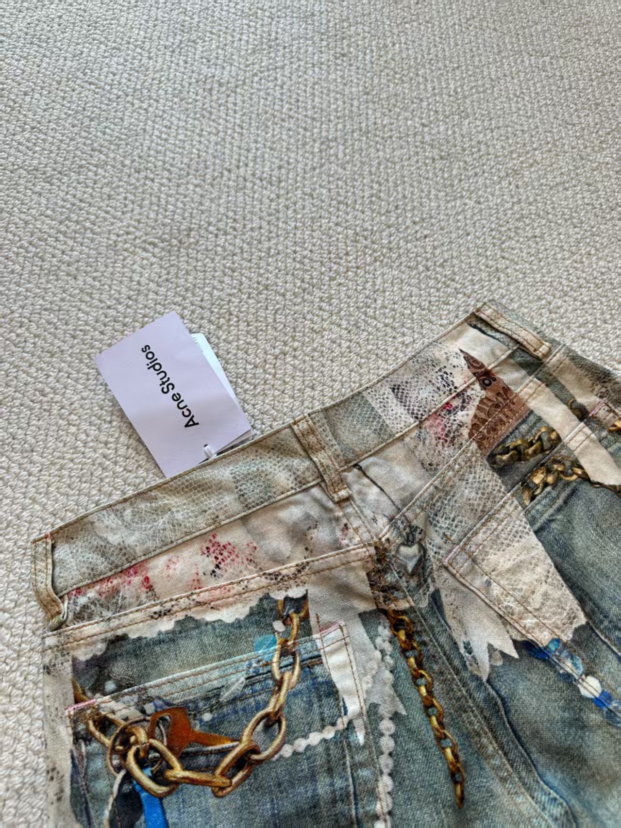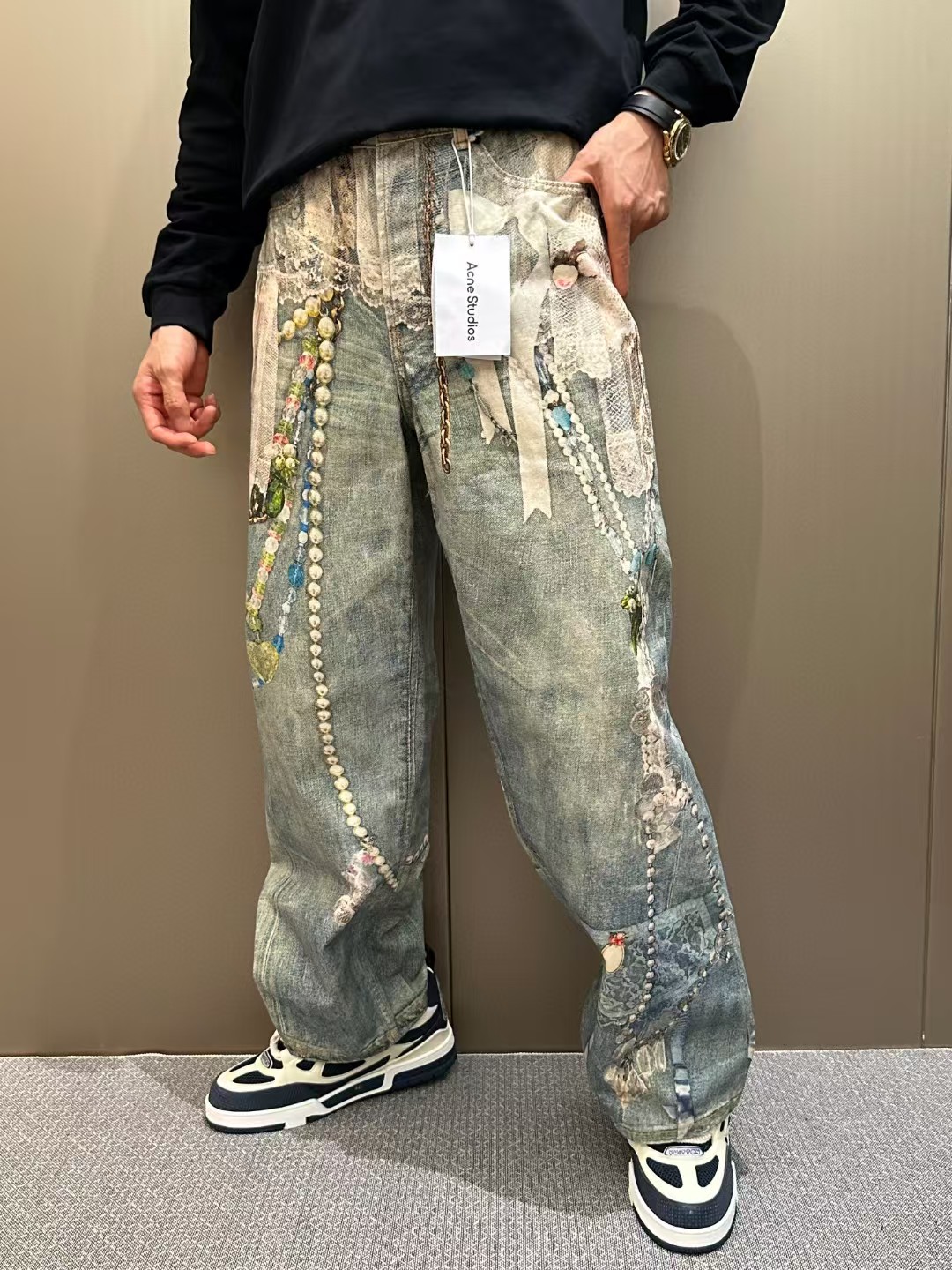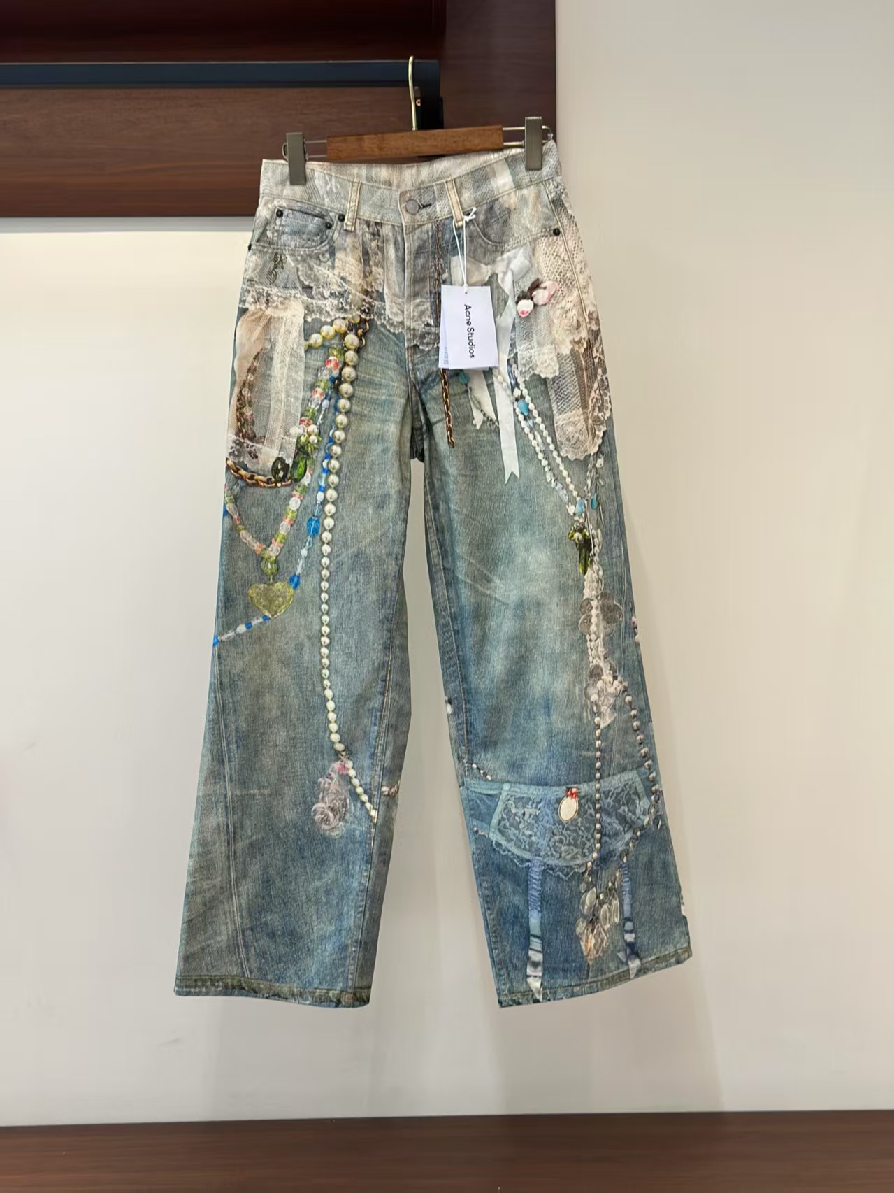 Acne Studios FW25 1981系列牛仔裤 蕾丝珍珠链条3D印花宽松牛仔裤 男女同款