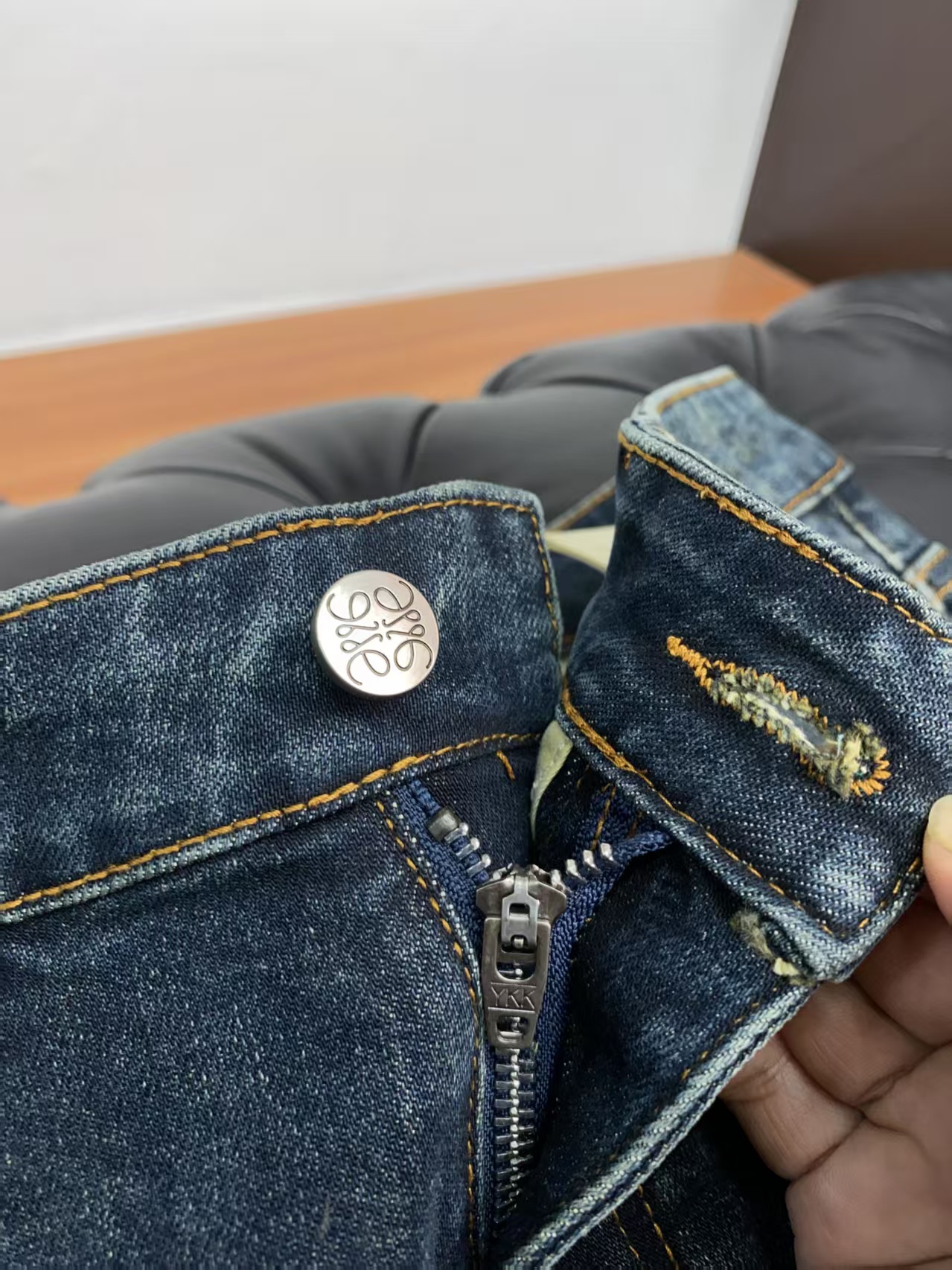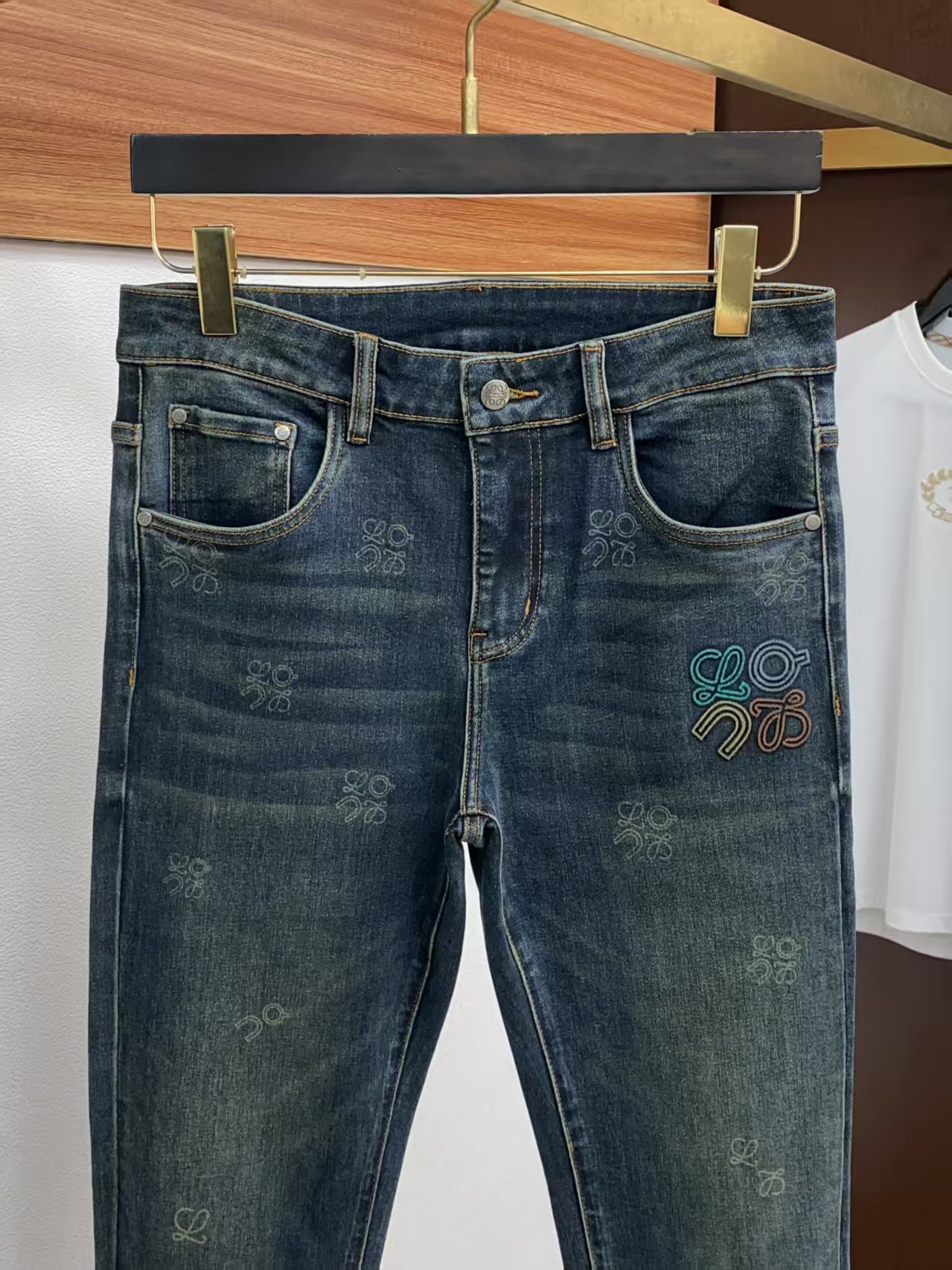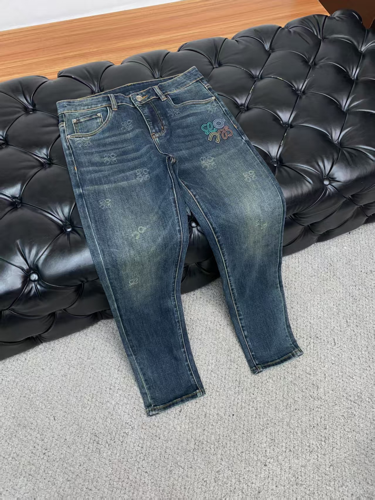介绍:罗意威 修身时尚牛仔裤 精梳牛仔面料 设计亮点:五金色使用超A级电镀金属色:古金色A级工艺!定制专用金属扣,金属小钉 整套辅料定制,尽显高级感!整体裤子设计简洁且高档,时尚首选!